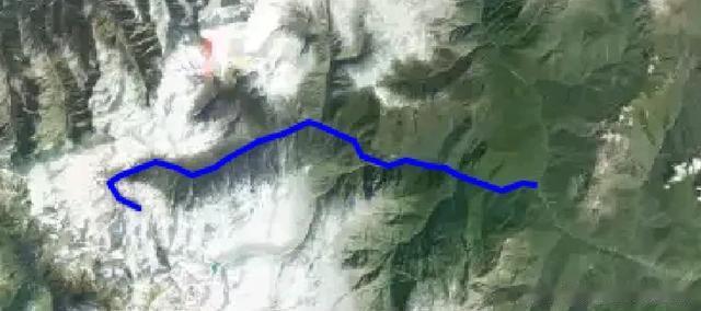 27、格拥河:杜来河一级支流(下图蓝色线),但此河长度似乎要比公布的杜来河正源下图(红色线)长。但此河依然不是杜来河最长支流,最长支流应为公布的杜来河正源与格拥河之间的河流(下图橙色线)。
