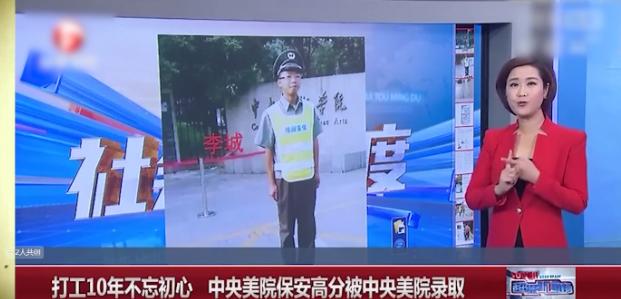 李城进入中央美术学院的那一年,学校的很多人都认识他,毕竟在这个学校当了那几年的保安,熟悉的面孔让同学们很是吃惊。