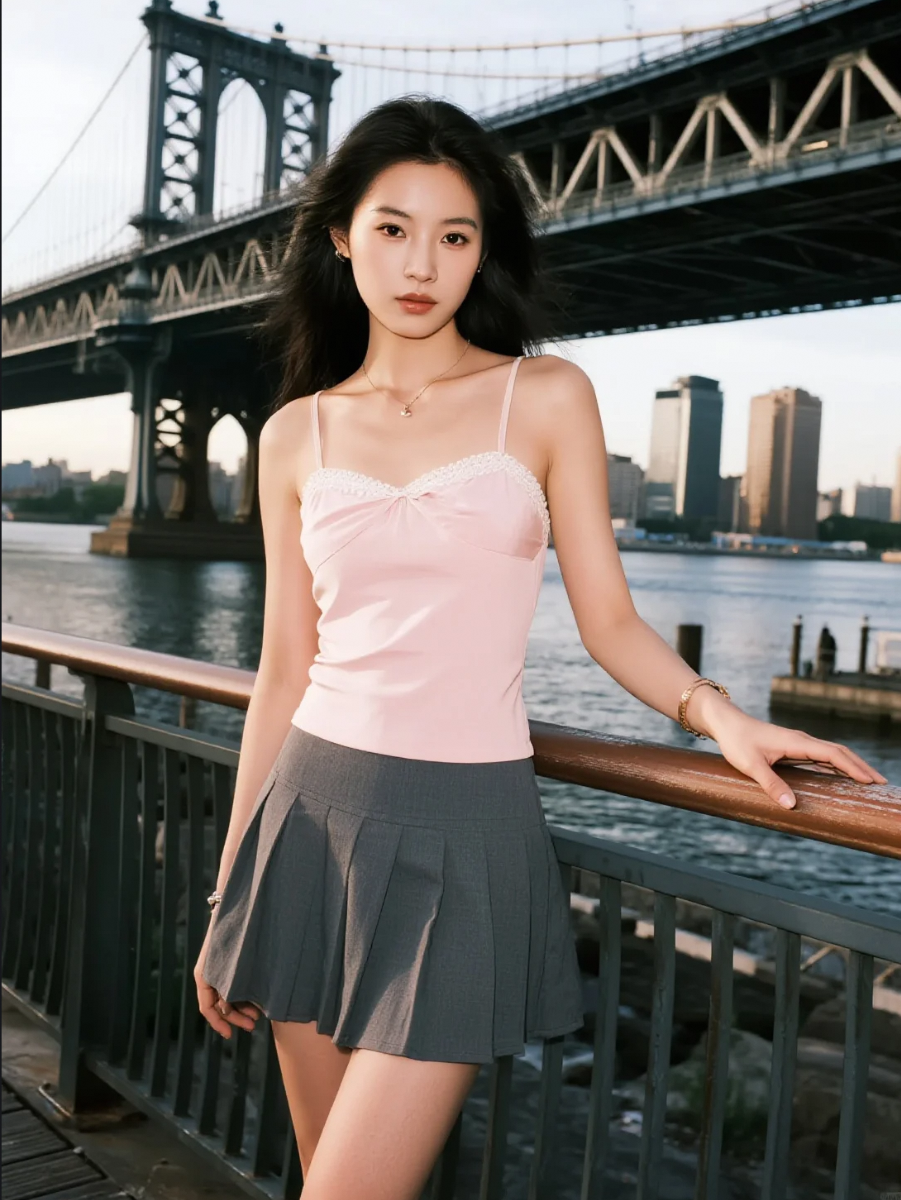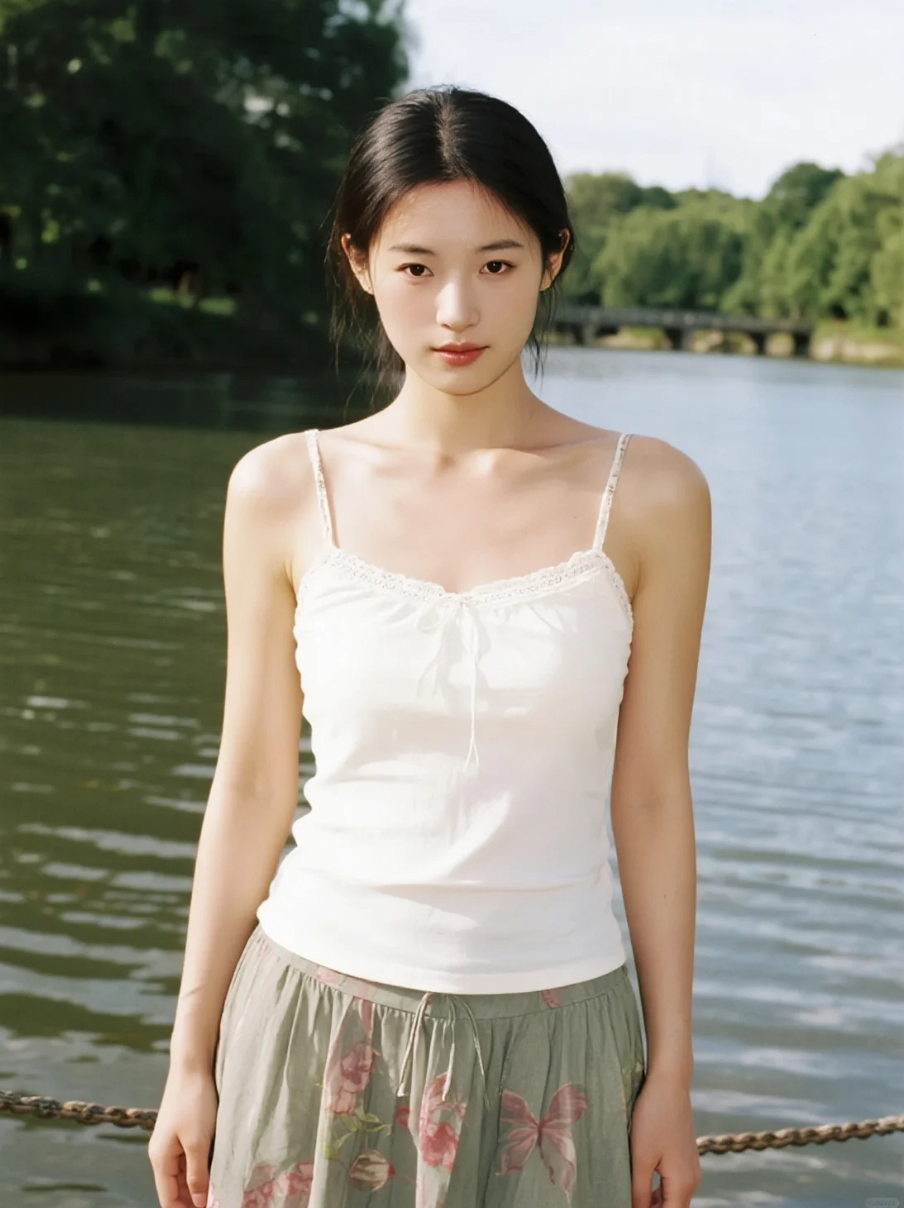 柔和光线中,她长发飞扬,T恤轻舞,优雅如画