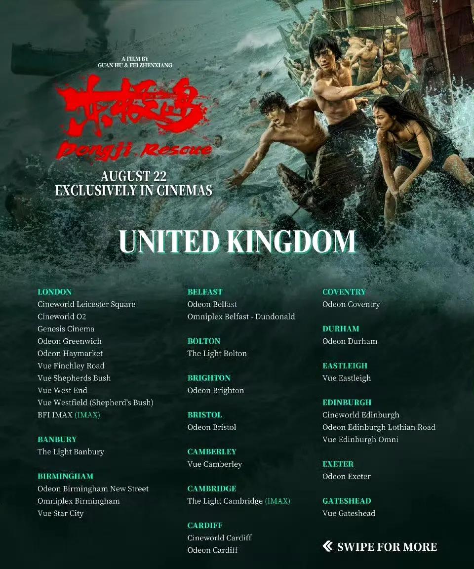 《东极岛》全球上映计划顺利进行中,今天是8.22日,欧洲,北美洲,都同时上映了。