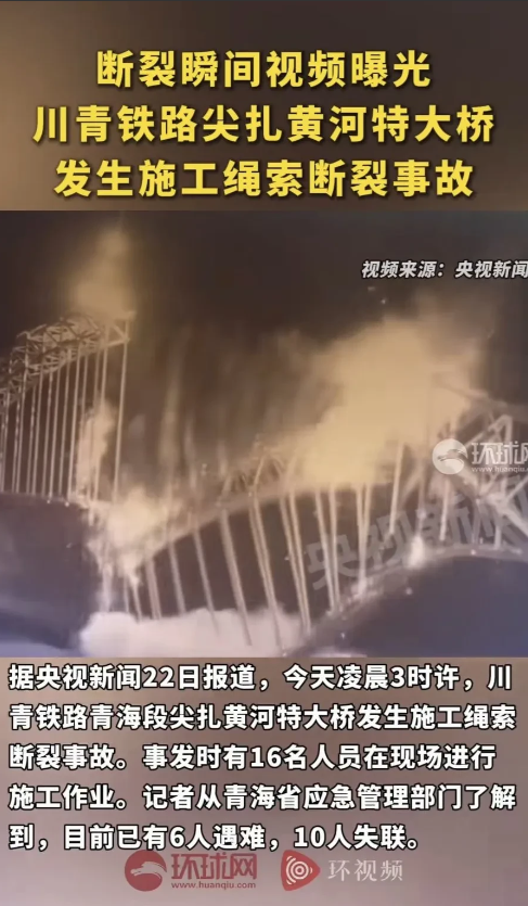 发现没,川青铁路大桥事故,早有征兆,仔细观察,桥梁在白天的时候,右侧悬索钢丝