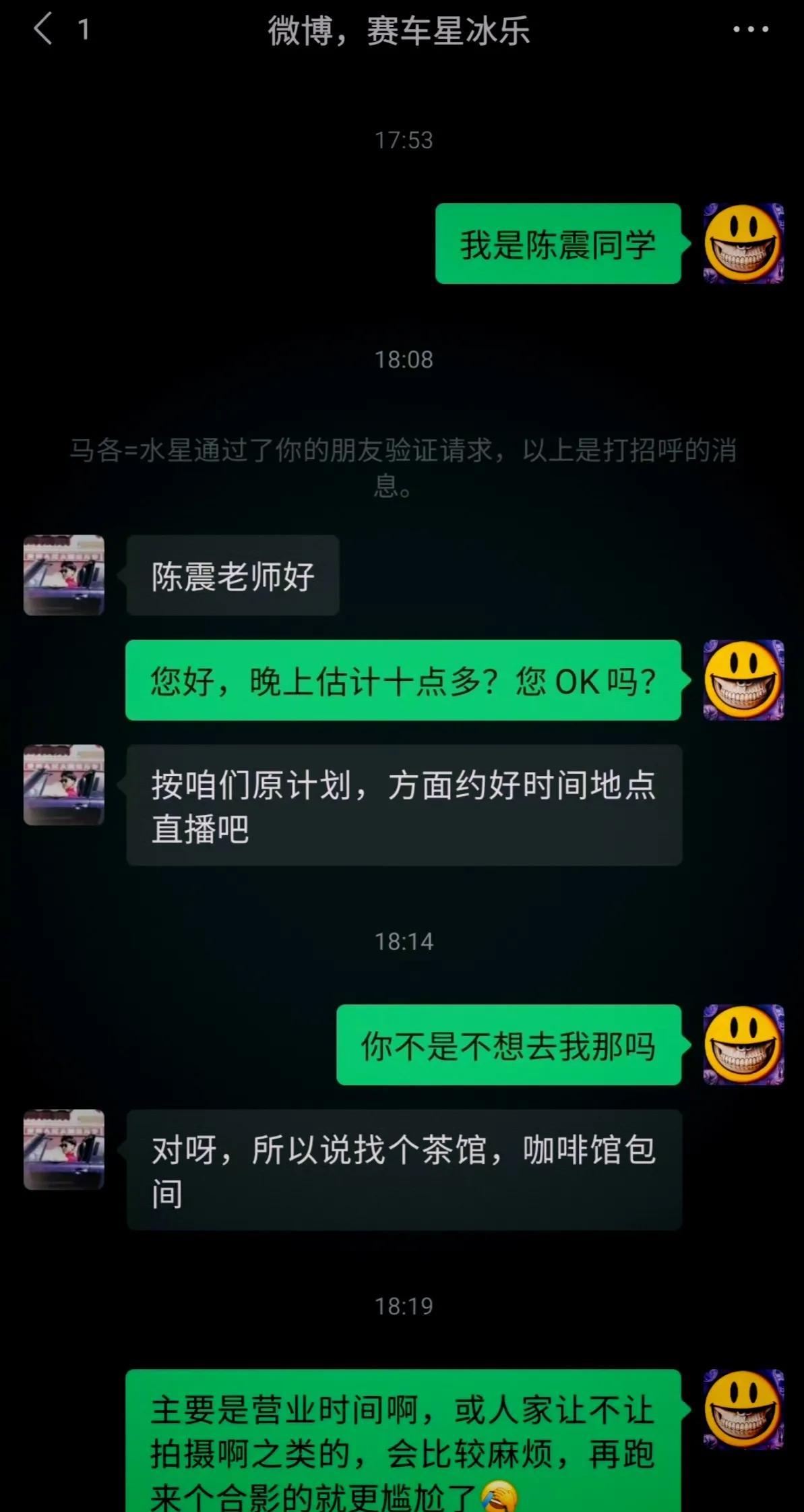 车评圈最大的盛事,陈震同学线下对线黑粉头赛车星冰乐。 就小米和法拉利事件展开友善和谐的谈论。 门头沟明晚8点,准时开赛。 网友建议找大保健韩路做主持人。 最后,辩论赛会不会变成八角笼UFC,拭目以待!