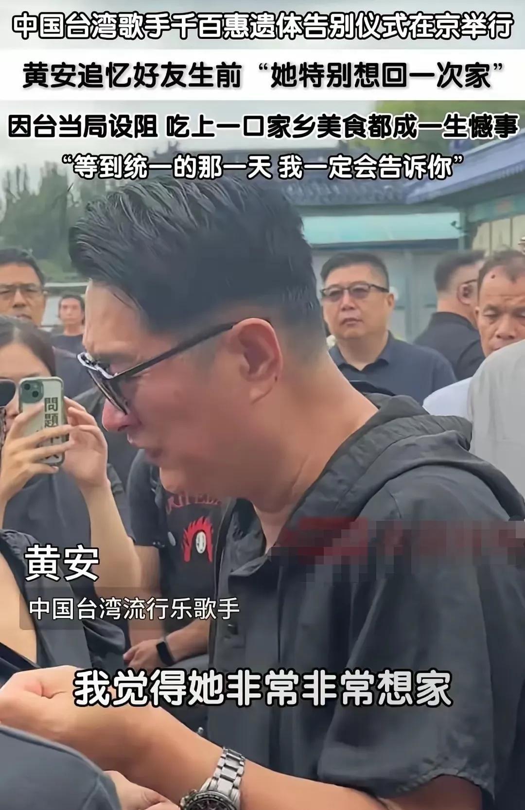黄安痛哭送别千百惠!千百惠是来自台湾高山族的著名歌星,为爱来到了大陆,也一直生活在大陆,她也非常思念老家的亲人,如今她突然离世,告别仪式在北京举行,一路走好!