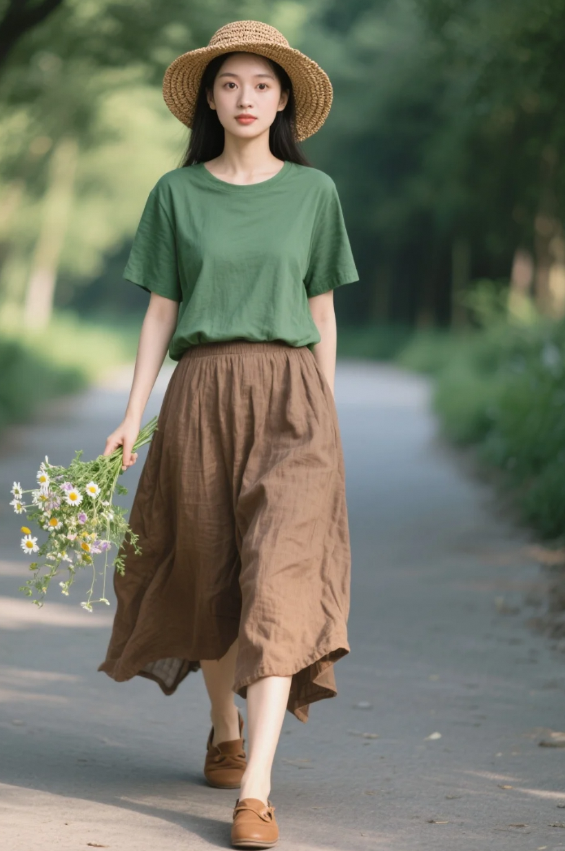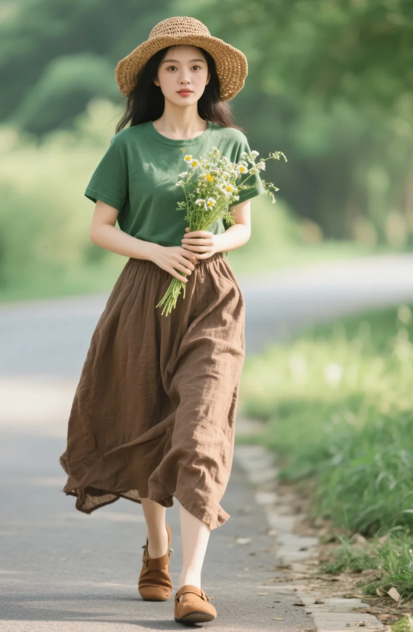风吹长发,裙带轻扬,美得像一幅流动的油画