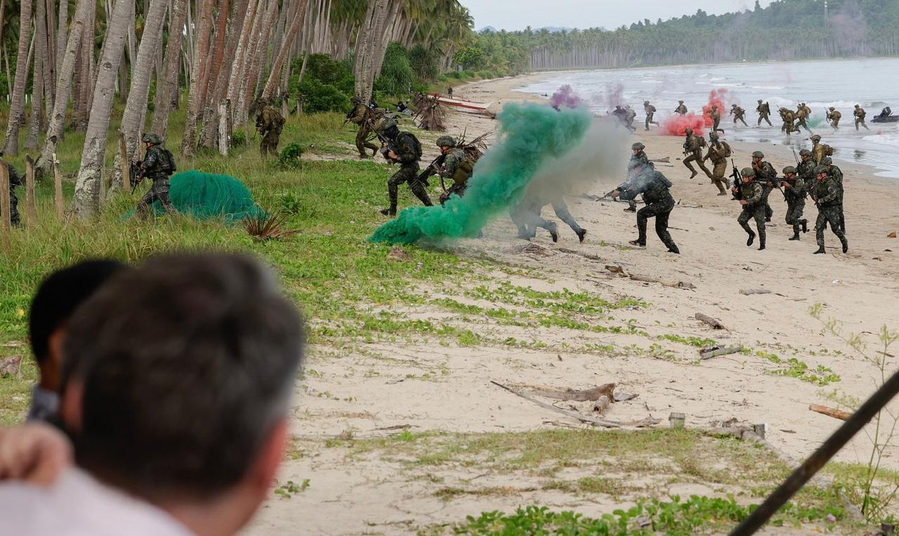 澳大利亚和菲律宾军队的军演,在南海之滨的巴拉望岛,也就是郑和岛,举行抢滩登陆演习