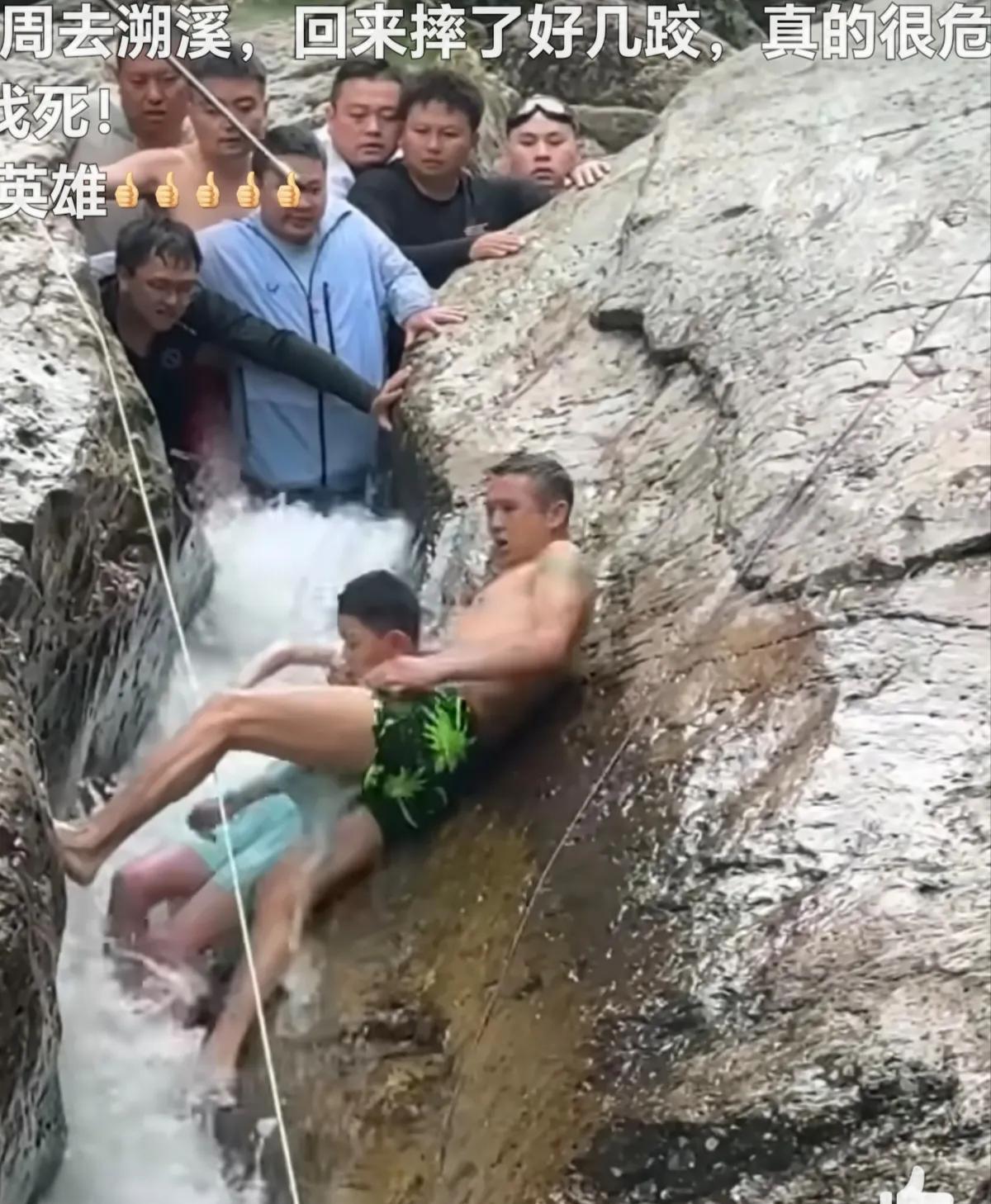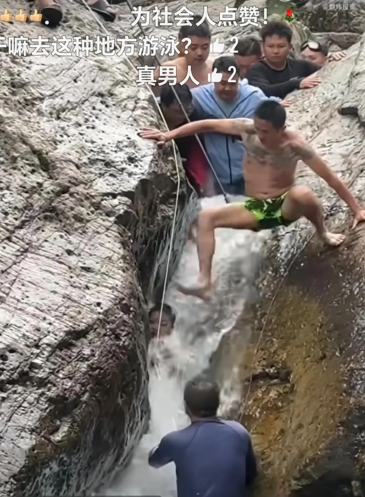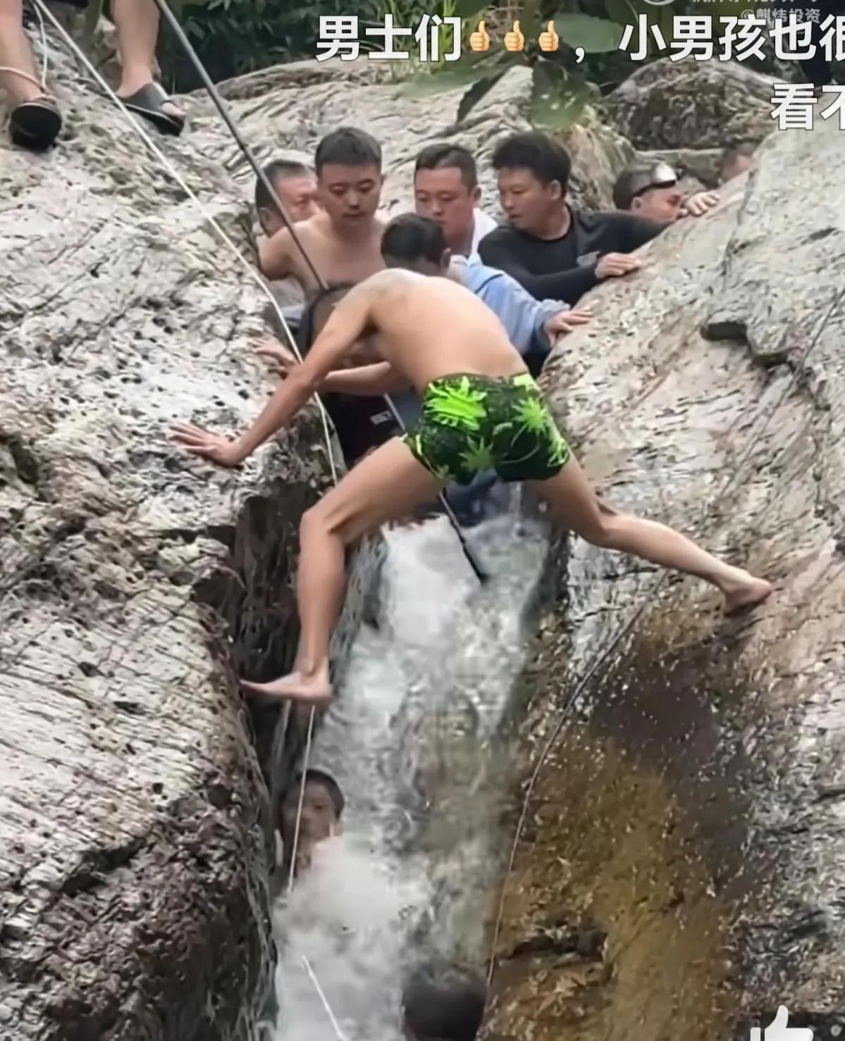 花臂男为39岁肖峰!第一次觉得花臂男挺帅的!8月24日,贵州都匀市一处景区溯溪1