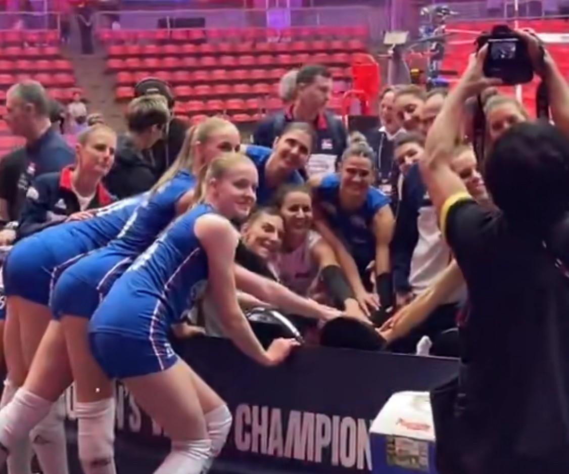 塞尔维亚女排冠军梦提前破灭!看博斯科维奇哭得这么厉害、表情这么痛苦,右脚的伤势不容乐观啊,看了一下受伤的回放,博斯科维奇的右脚是90度崴脚的,蛮吓人的,疑似右脚韧带扭伤,可能会缺席接下来的比赛了!看她都疼哭了,心疼队员们,在打球的时候要保护好自己啊!比赛结束后,塞尔维亚女排过来找博斯科维奇拍胜利大合照,队员们都去安慰她,然后蹲在博斯的旁边拍胜利大合照,胜利的喜悦一起分享,还蛮感动的!