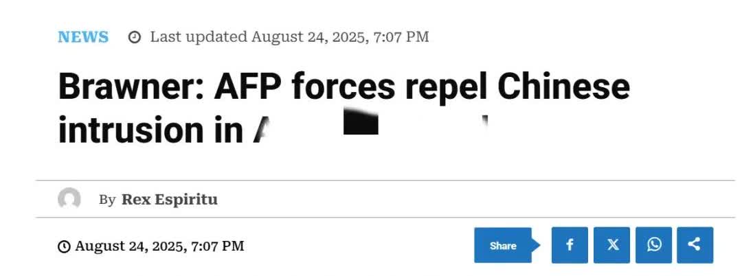 菲军参谋长:已在仁爱礁击退中国,菲方正在为补给做准备。 据《马尼拉标准报》报道,菲律宾武装部队参谋长罗密欧·布劳纳日前在与澳大利亚副总理兼国防部长理查斯·马尔斯一同参观澳菲联合军演时公开表示,驻扎在非法“坐滩”舰上的菲律宾士兵成功赶走了试图进入仁爱礁暗沙的中国船只,缓解了南海紧张局势。 布劳纳表示,菲方成功阻止了中国船只进入仁爱礁暗礁,甚至成功地将中国船只赶出了仁爱礁,他已下令剪除中国在仁爱礁东南入口处布设的渔网,为即将向非法“坐滩”舰的补给做准备。 布劳纳重申,南海的任何菲律宾人死亡事件将构成“红线”,从而触发包括启动《共同防御条约》在内的军事应对措施。 从布劳纳的公开表态可以看出两点,一是菲军方吹牛的功夫跟印军有的一拼,现在仁爱礁的菲方那艘破船正在被中国船只团团包围,菲军方也不怕说大话闪了舌头;二是菲方破船到了必须补给的时刻,如果没有补给,上面的菲武装人员可能就要喝西北风了。 因此我们要做的就是继续封锁仁爱礁,不让任何菲方船只靠近,一鼓作气解决问题。