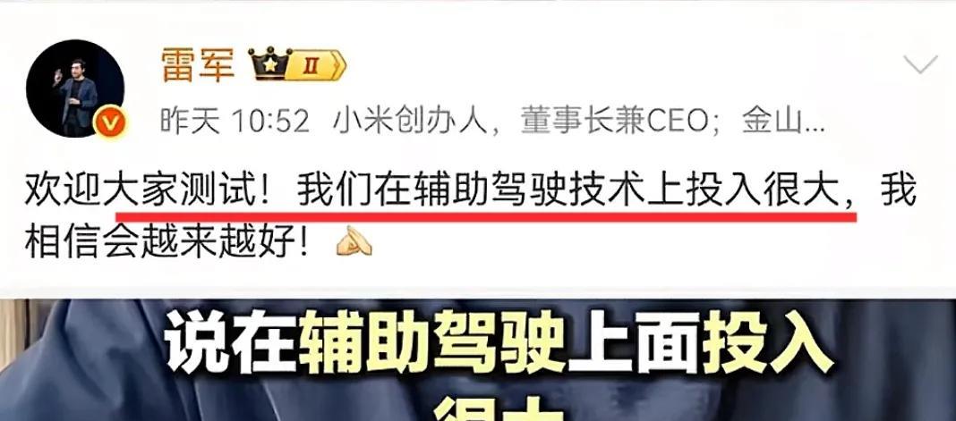 为什看不到测试小米智驾的车主,雷总说了欢迎大家测试小米智驾,小米投入了很多。作为