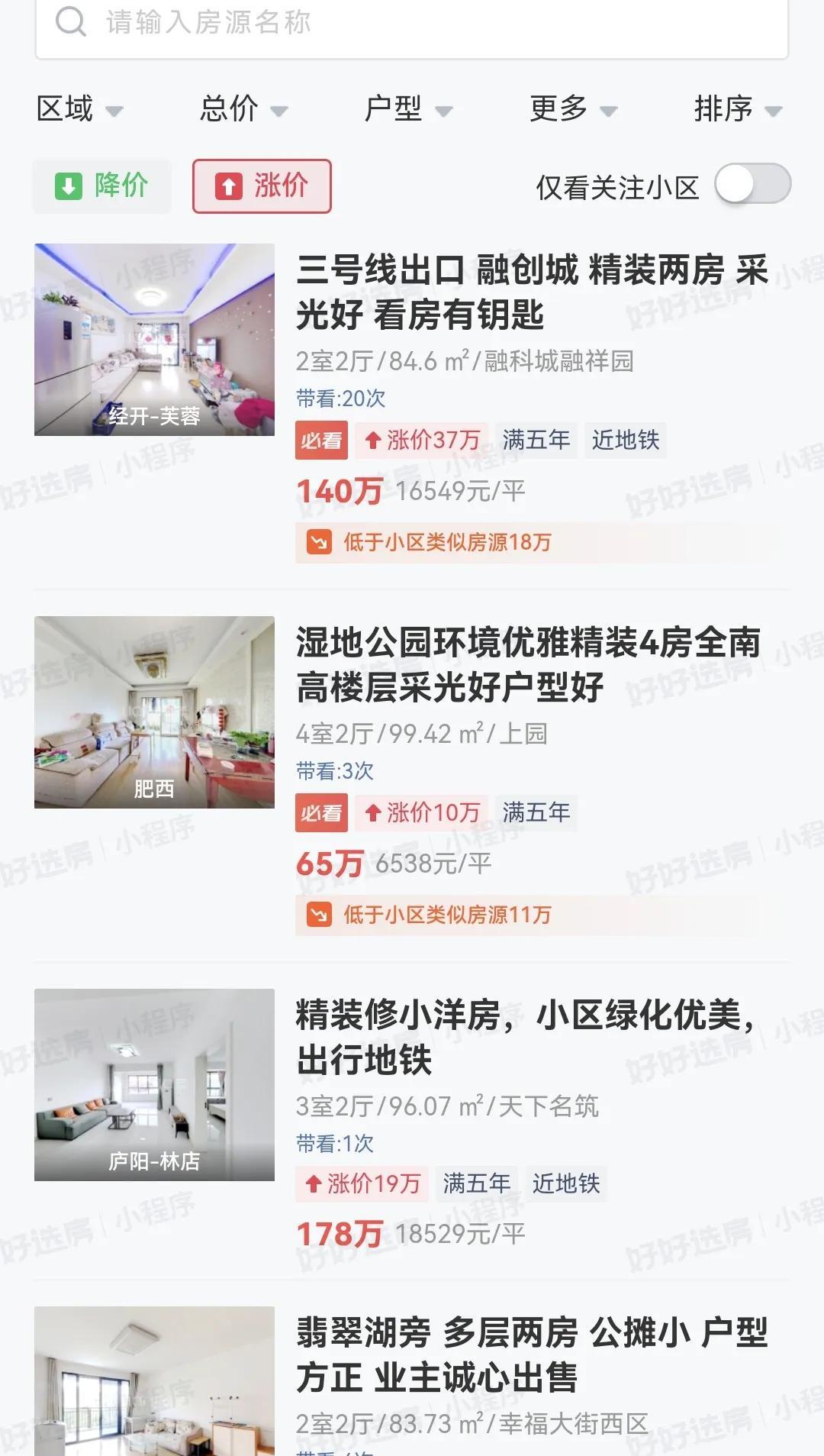可能是看到上面又说了稳的意思,以及上海外环取消限购,合肥有些房东就看到希望了,就来涨价了。 其实这只是在掩护邻居出货。都啥年代了,还信这一套。频繁的说稳,上海都取消限购,就是说明已经病入膏肓了。然后有点钱的就去上海买了,下面这些一线又不咋够格,二线又觉得身份低了的城市,但是房价还要参考一线城来的更难了。 所以合肥有些人的房子卖不出去,就是真看不清局势,可能就是要做一辈子房东,看看三十年后是否拆迁。