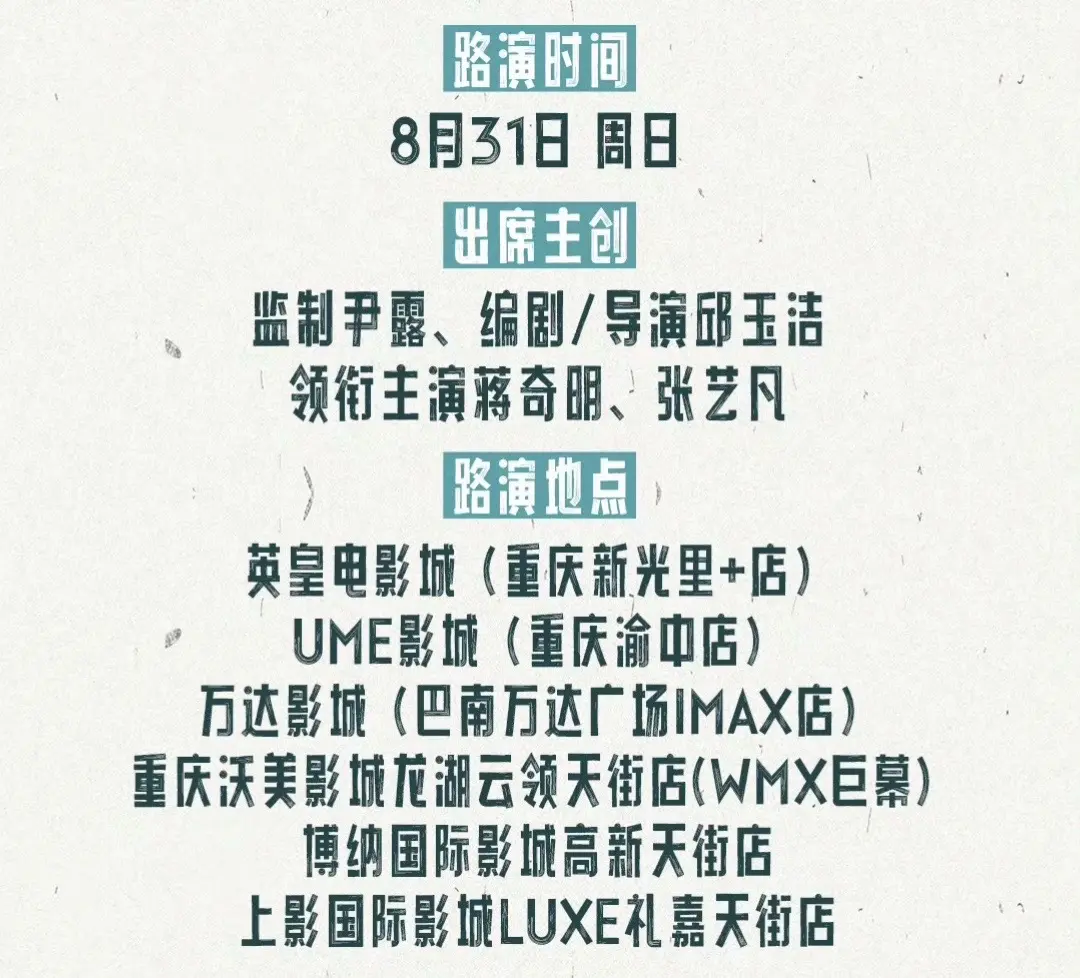 👤路演嘉宾:监制尹露、导演/编剧邱玉洁、主演蒋奇明张艺凡