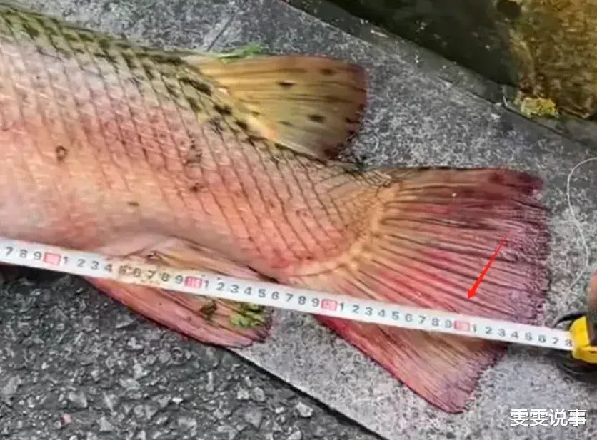 最后,男子把这条大鱼拖到一个角落,拉开尺子量了一下,这条鱼的体长果然达到了一米三还要多,堪比一头小肥猪。