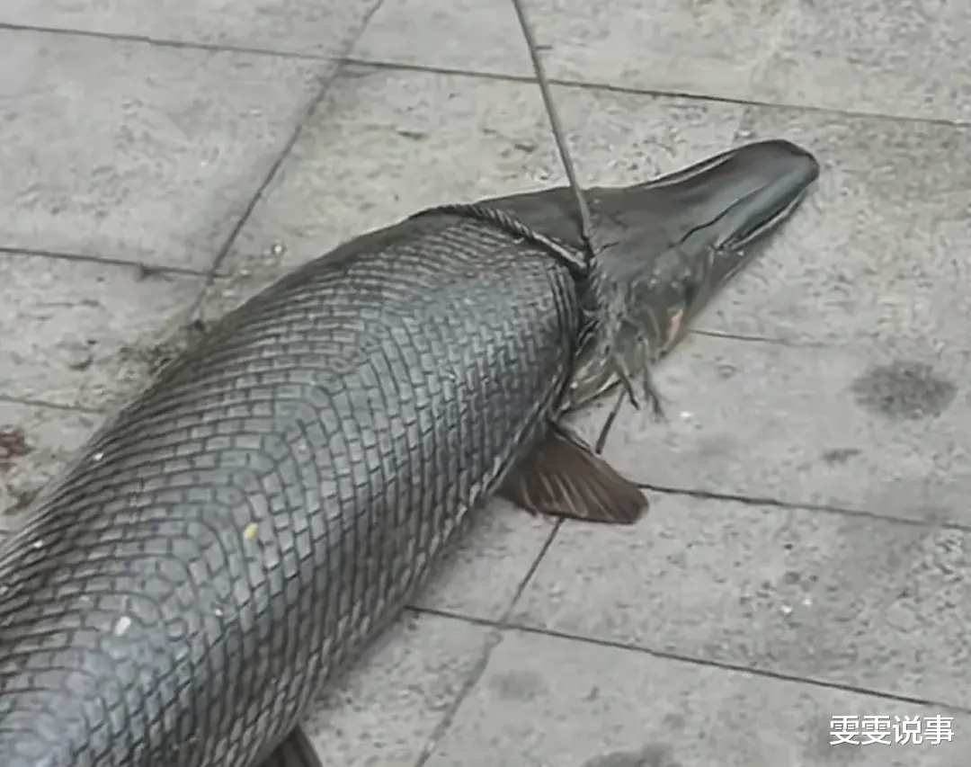据悉,这条鳄雀鳝是男子在当地一处河道用“特殊方法”钓上来的,钓到这条庞然大物之后,男子显得有些不知所措,不知道该如何处理这个大家伙。于是便用绳子拉着它,想要将其送人。但路人看到这个怪鱼,纷纷摇头,没人愿意要。