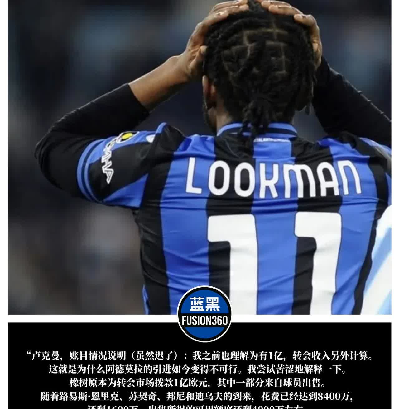 卢克曼前往国米为什么黄了,扎扎罗尼详解其中原因 扎扎罗尼拆账:橡树夏窗拨款1亿,其中一部分来自出售。引进苏契奇、恩里克、邦尼、迪乌夫后花掉8400万,还剩1600万,加上出售收入约剩4000万左右。 国米最高给到4500万(含奖金),但亚特兰大坚持高价。再加上橡树没批准追加预算,交易直接卡死。 一句话总结:不是老马不想买,而是口袋里没钱了。球迷的梦,最终输给了冷冰冰的财务表。💙🖤