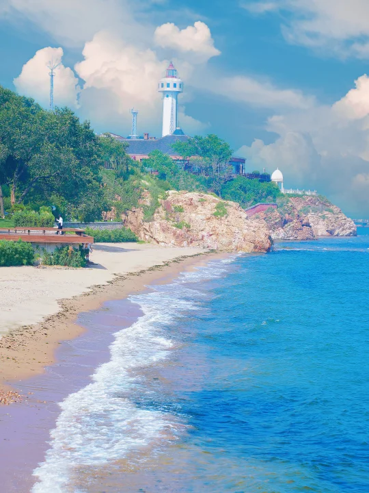巨型油轮,可以做快艇🛥️远处的灯塔海岸线超美