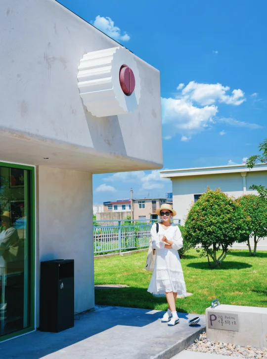 水泥灰色系建筑风格酷似阿那亚,坐在门口椅子上拍照很出片儿