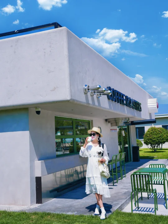 西港花园新晋咖啡馆,安娜咖啡步行到这里三分钟,外观设计像一台咖啡机,室内ins风,窗外是绿油油的草坪,安静人少是适合坐一下午的地方