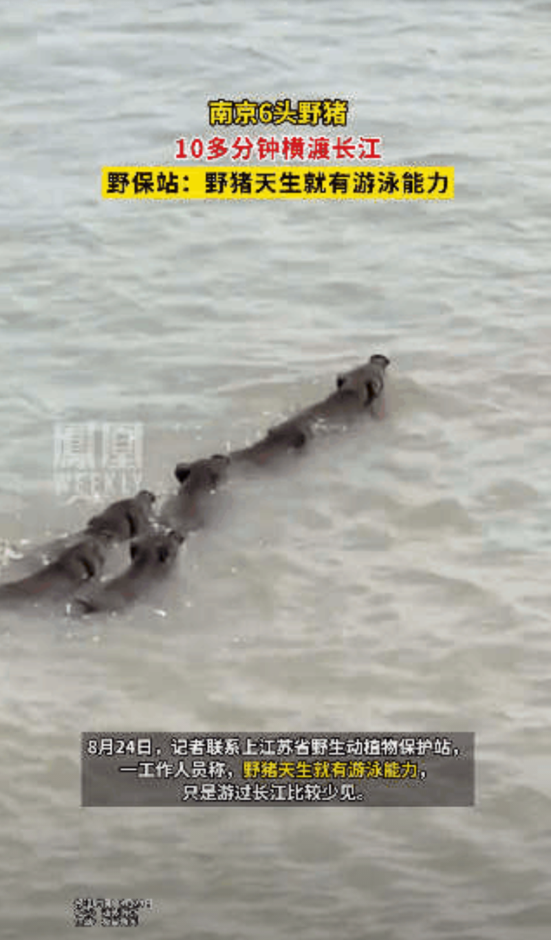 8月24日报道,一位无人机爱好者在长江边拍摄时,突然发现江面上有几个黑乎乎的东西快速移动,拉近镜头一看,好家伙,竟然是六头野猪整整齐齐排着队游泳渡江!