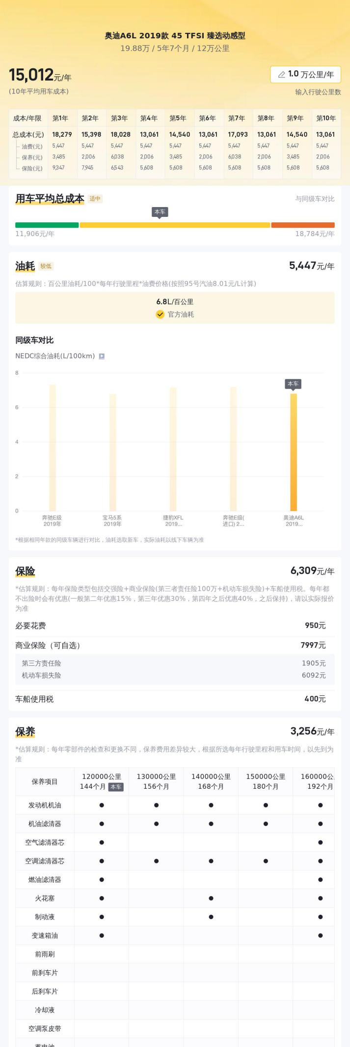 另外,我们还要考虑这辆车的后续使用成本。 奥迪A6L的零部件价格相对较高,日常保养和维修费用也比普通车型要贵。 每年的保险费、油费、停车费等等,加起来也是一笔不小的开支。 这些隐性的成本,你都考虑到了吗?