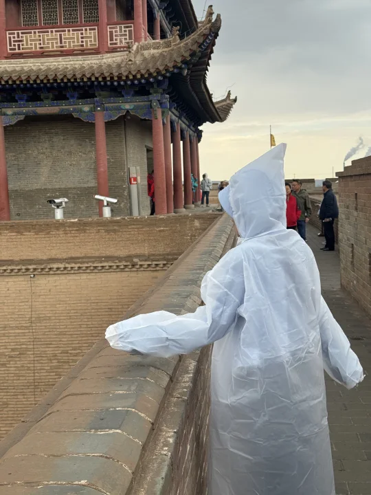嘉峪关的风 真的超大还冷!! 果然塞外的风特别冷是真的啊哈哈哈 去的时候还下了点毛毛雨 第一次穿大陆的雨衣 好可爱哦 帽子的部分 尖尖的 好像一个小精灵🤩 下雨天就变小精灵啦嘿嘿😍 即使天气不好 还是感觉得到关城磅礴的气势 西北的风景真的超级不一样啊啊 好喜欢😘