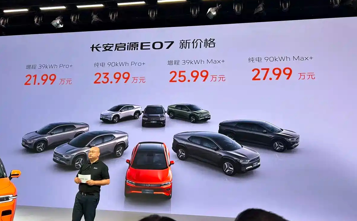 日前,长安启源E07于2025成都国际车展上市,推出了4款车型,提供纯电、增程两种动力,售价21.99-27.99万元。 具体来看,新车带来了两大配置升级:其中,Pro版新增了“空气悬架+智能CDC”配置,配合双零重力座椅,舒适度进一步提升。而Max版则新增双电机四驱系统,性能提升明显。 在设计这块,新车新增了云深灰、哑光云深灰车色,并推出车尾车身同色的选装,满足用户的个性化需求。当然,全新的20 寸、21寸轮毂,也是一个加分项。重点来了,官方还推出了赤橙热浪定制车衣,并开启了定制车衣共创计划。 据悉,长安启源E07 Max及以上版本车型,预计将在2026年一季度升级搭载高算力Thor U的端到端智驾辅助系统,期待后期的试驾体验。 超3.1米的轴距、131L独立防水前备厢等加持,空间舒适性也没话说。而前双叉臂+后H臂全铝合金独立悬架、空悬+ CDC智能魔毯、座椅加热/通风/按摩、9个安全气囊等配置,也看得出来长安启源下本了。 最后,大家觉得升级后的长安启源E07值不值?