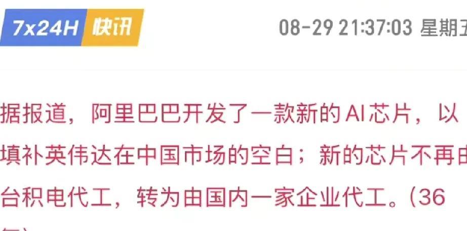 阿里巴巴要重新估值了,阿里放大招了,它开发了一款AI芯片,可以完全替代英伟达的H20,而且不需要台积电代工,找国内的芯片厂代工,也就是完全不受美国的限制,难怪黄仁勋上个月那么着急要清仓H20,原来是阿里巴巴要放大招了,这几年阿里巴巴确实已经不再是一家单纯的电商公司了,阿里云、大模型和芯片,阿里的科技之路开始从量产到质变了,阿里要重估它的市值了,现在阿里巴巴是3000亿美元,如果芯片这个事情,真的落实下来,阿里巴巴市值破万亿美元,应该不是问题!