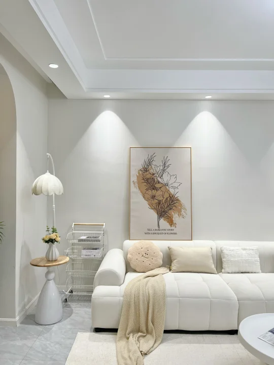 🔎沙发左右留出落和置物架或者绿植,也不显拥挤