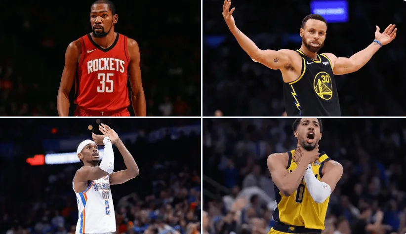 图中给出的4名球员是:杜兰特、库里、亚历山大和哈利伯顿。