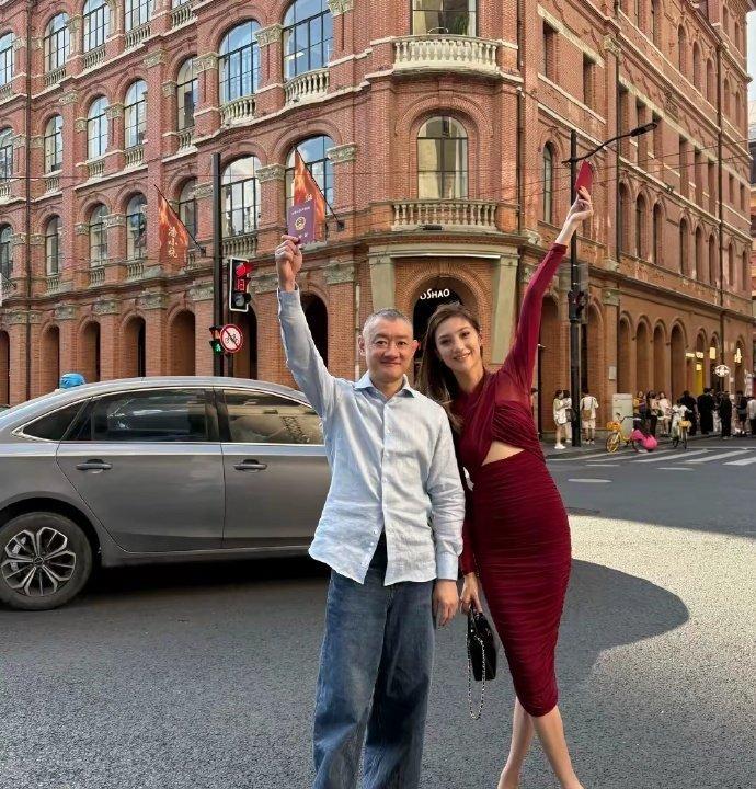 张天爱跟素人合影,胯真的好宽,大宅院似的