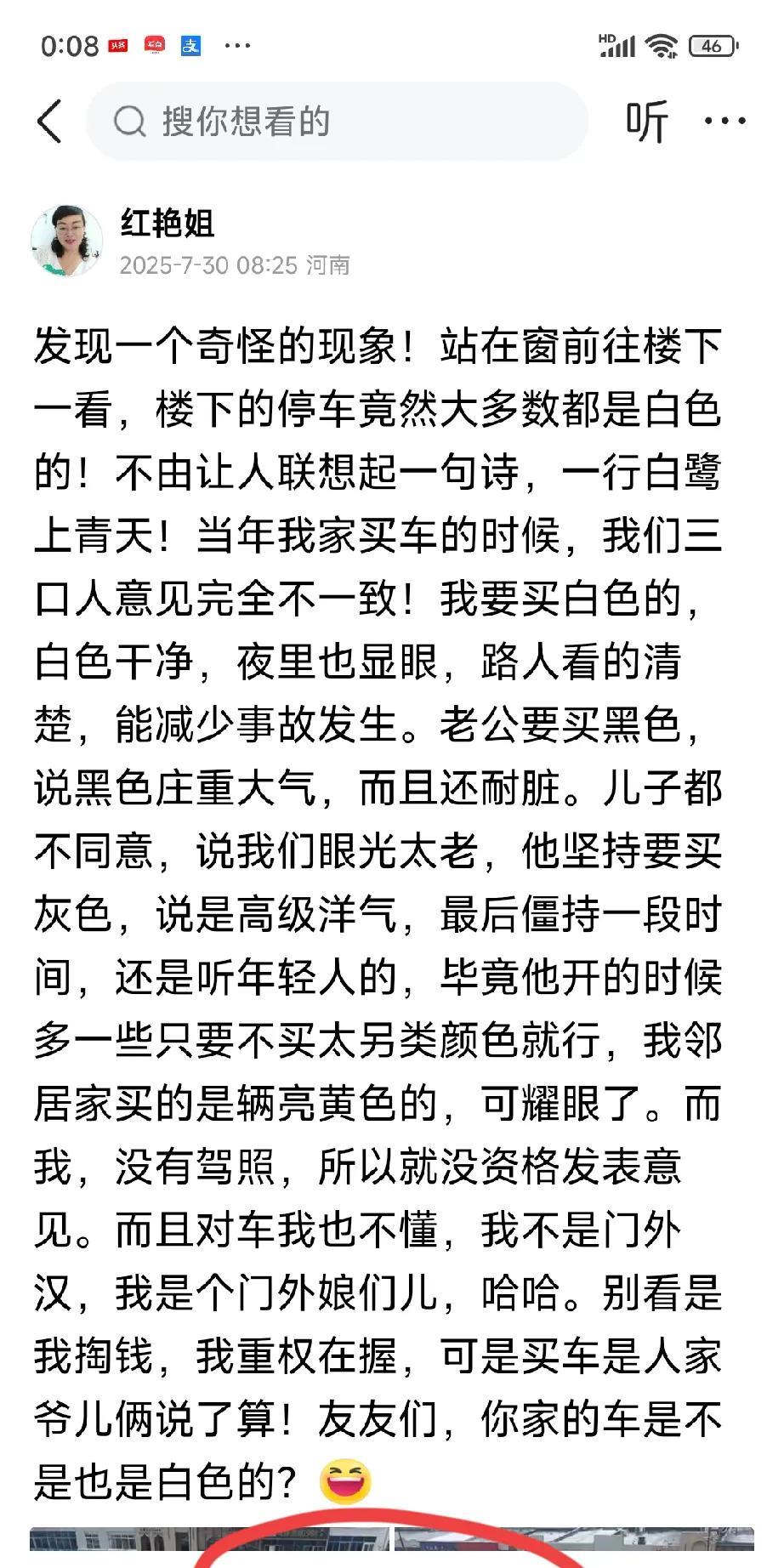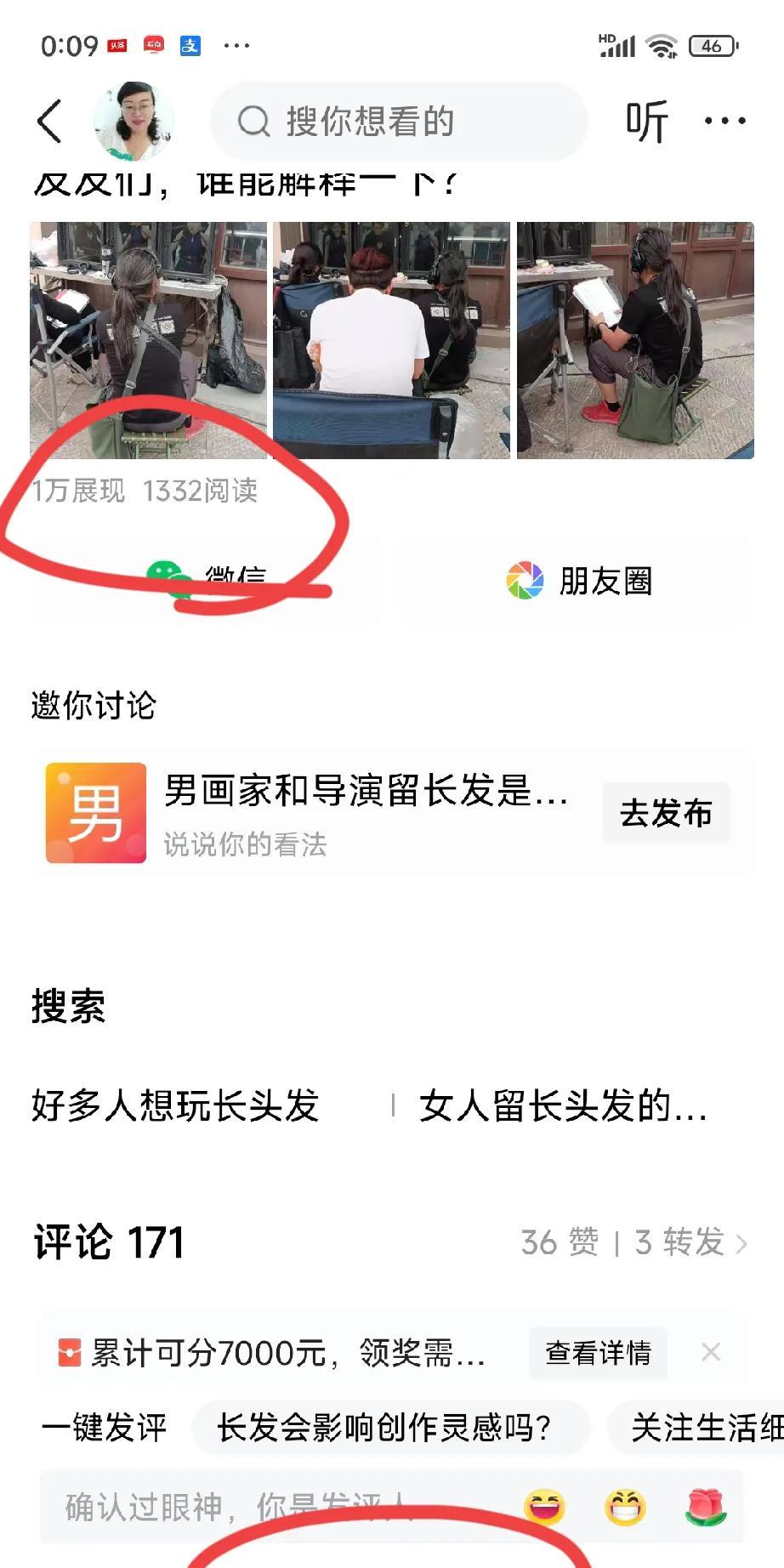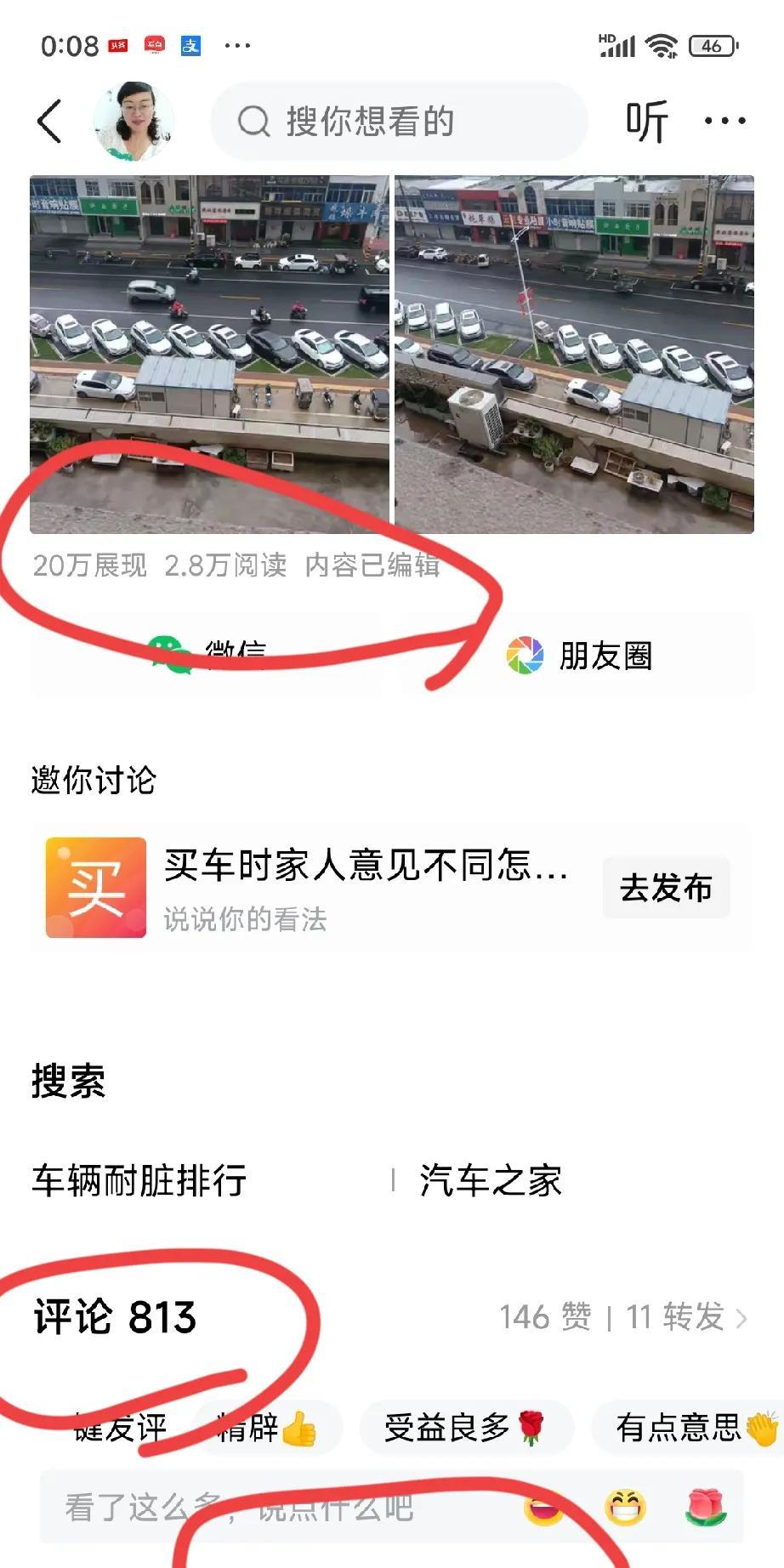 告诉你们一个神奇的事儿! 千万不要随便删你的作品! 说是男画家和导演喜欢留长头发, 发了以后当时展现量很不好, 阅读量没几个,也没有人评论, 我就特别想把它删掉, 结果一忙起来把这事忘了! 谁知道过了两天突然它就小爆了! 打开一看未读消息,99+! 好多都是关于这篇的, 评论区热火朝天的很热闹。 是关于买黑色车还是白色车, 当时我也是嫌展现量不好, 差点儿就把它删掉了, 结果现在它跑到20万的展现量! 阅读人数2.8万,评论800多条。 所以说,有时候你觉得不行, 或者是大家觉得有意思。 这两篇都差点儿被我删掉, 结果尾流量相当厉害! 以后可不敢随便乱删了。 日后也是一篇小爆款呢! 不信你们去看看我这两篇, 浏览量还在一直涨呢! 展现量阅读人数评论都在上涨, 已经超过了我截图上的那个数。