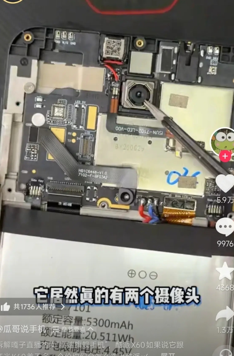 刚开始拆机博主,还在称赞手机真的有两个摄像头,用料很足。