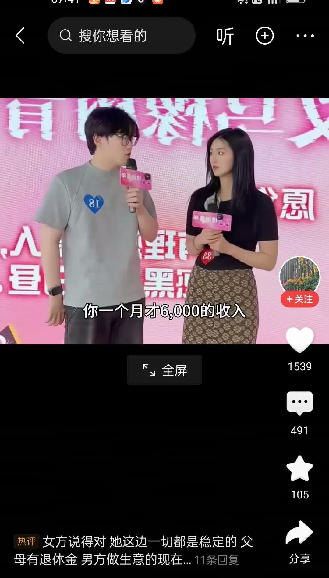 男生和女人相亲。女人拒绝了男子。男子更很奇怪,就问女生,你一个月薪6000的人凭