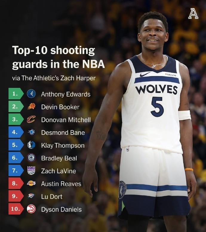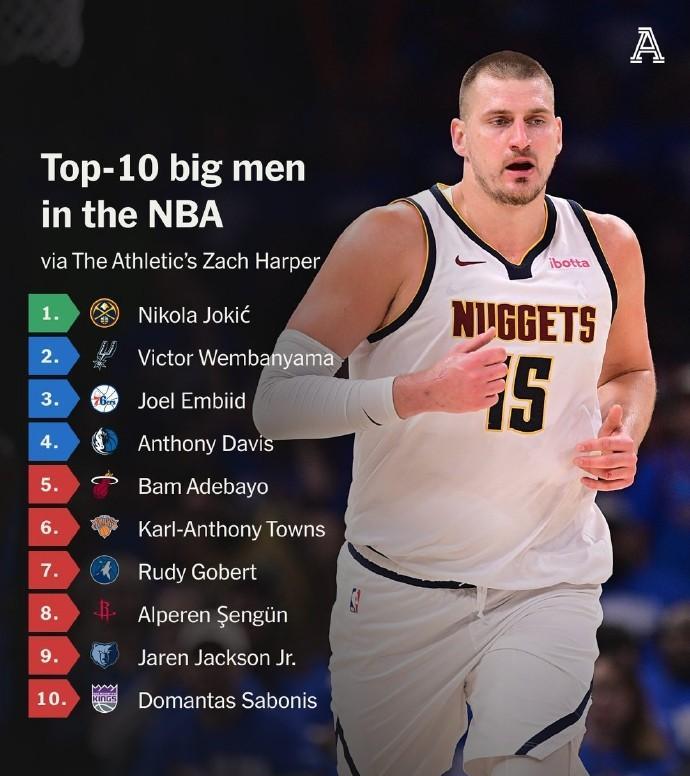 The Athletic近日排出新赛季各位置TOP10球员 控卫前三——亚历山大,东契奇,库里 得分后卫前三——爱德华兹,布克,米切尔 小前锋前三——詹姆斯,杜兰特,伦纳德 大前锋前三——字母哥,塔图姆,班凯罗 中锋前三——约基奇,文班亚马,恩比德