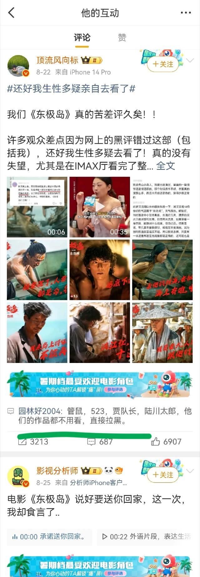 《东极岛》被黑有幕后推手,如今被抓到机器人无差别在评论区疯狂输出一字不改的黑评。
