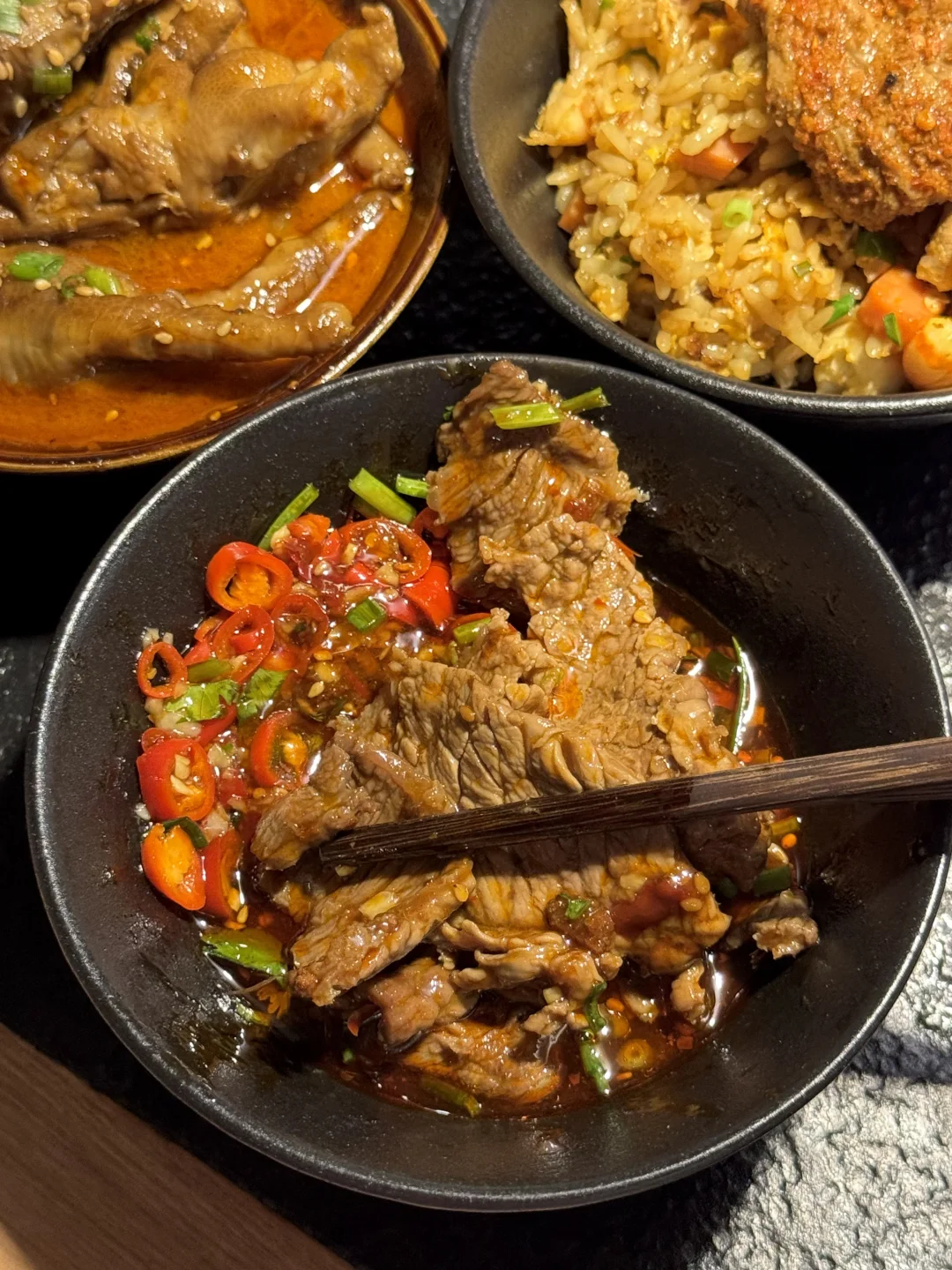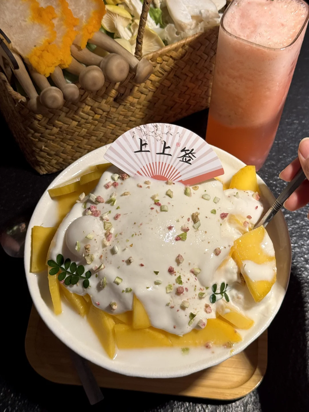 义乌我心中可以排前三的重庆火锅!就在星火马村!店里超级有氛围!不用去成都也能体验到的茶文化~还有🆓的餐前水果我真的爱死! 强推他家牛肉系列!还有竹笋拼盘、菌菇 野菜拼盘选择好丰富!再来一碗芒果雪冰解辣又清爽…真的好巴适啊啊!