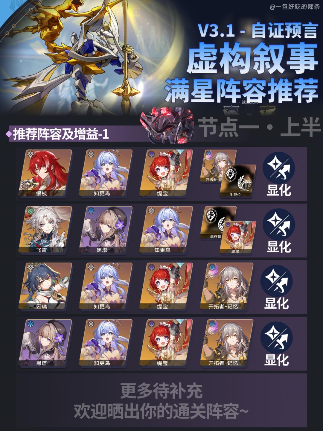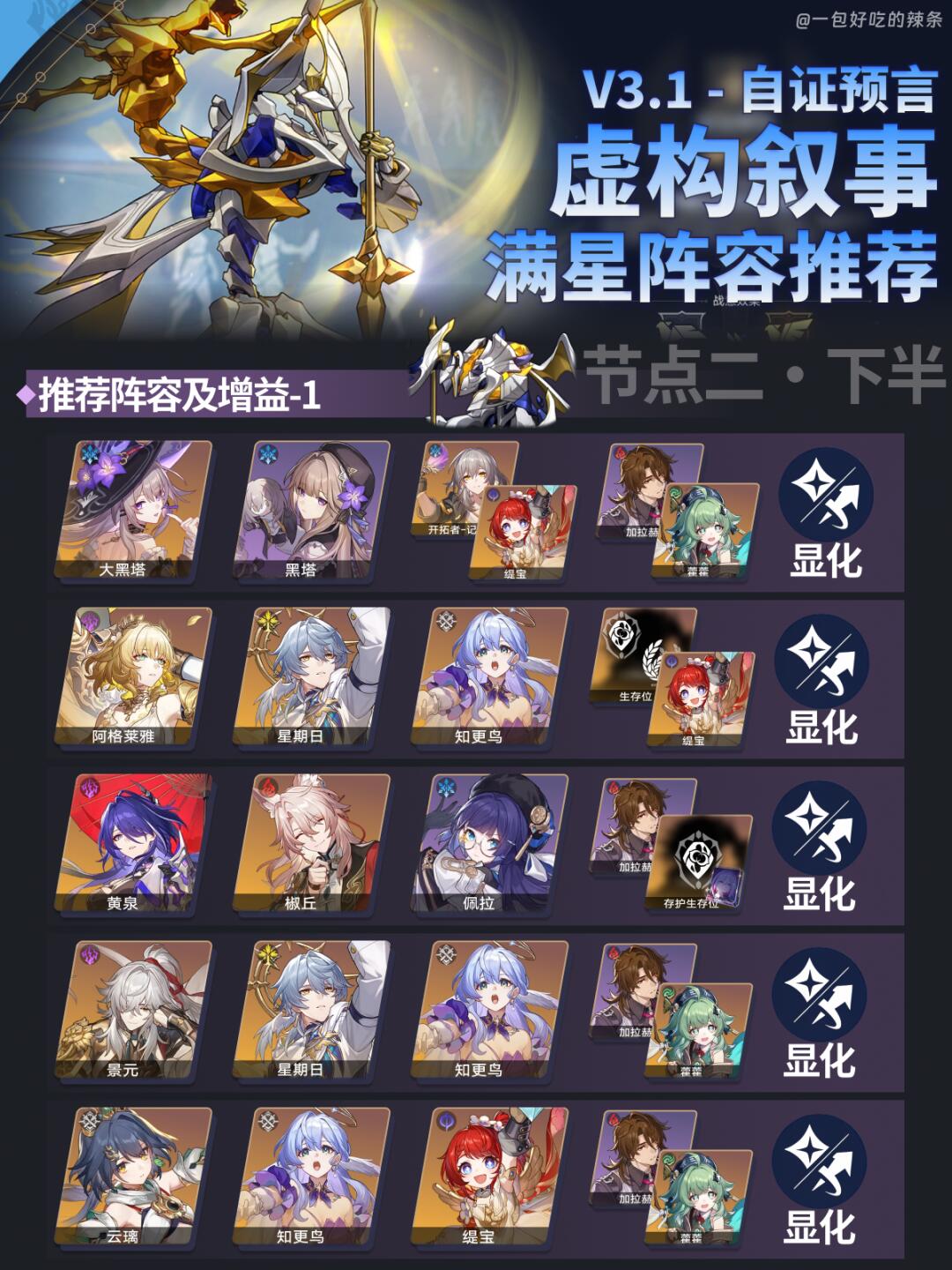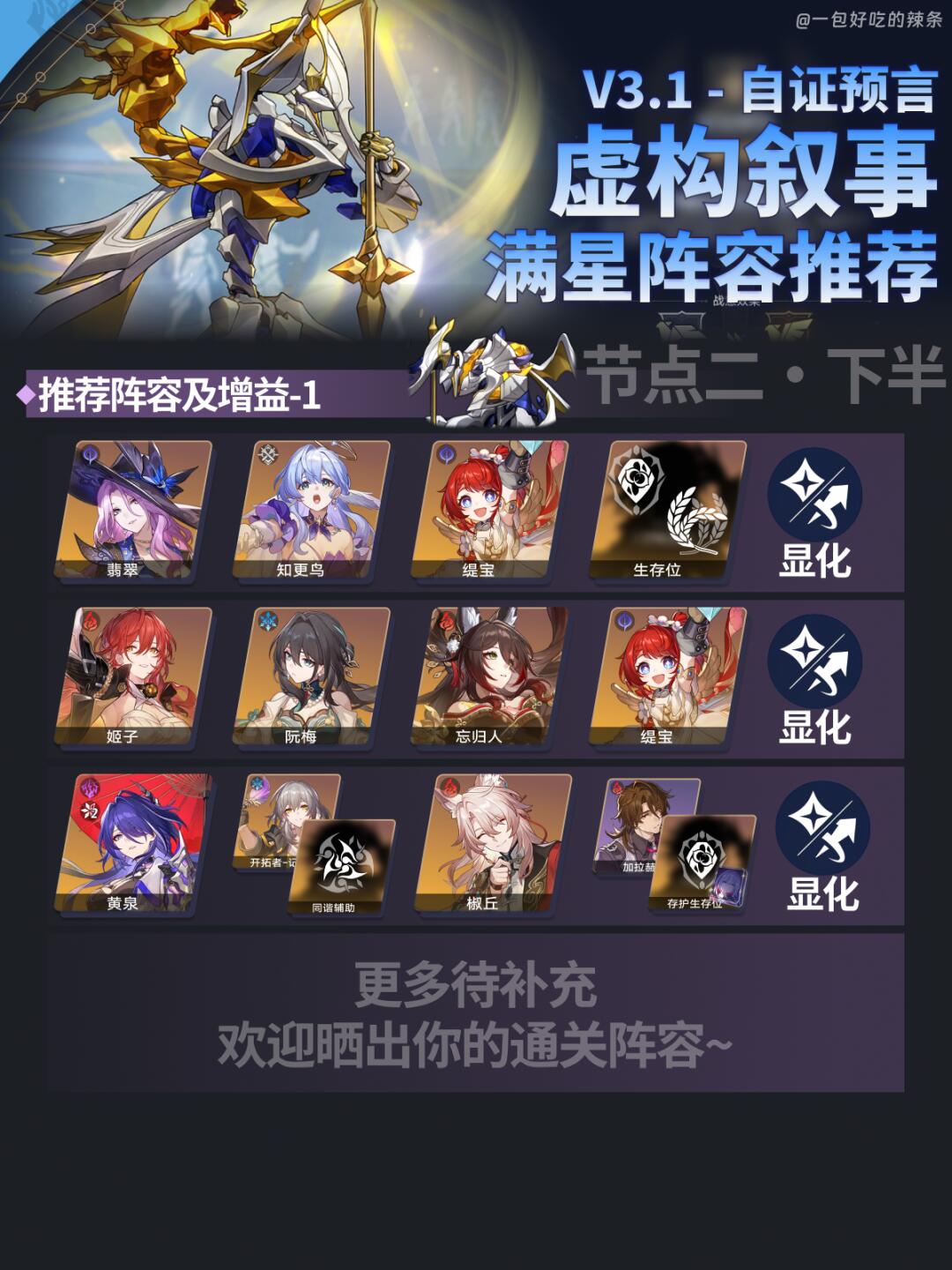 大家好,这里是辣条~ 这期是3.1新虚构叙事的阵容推荐