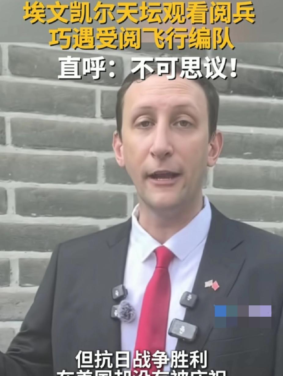 发现一个细节,埃文凯尔为了这次大阅兵,特意把头发染成了黑色,穿着西装和精心选择了一条红色的领带。 他是真的理解中国。 自从他顶着压力和威胁把那本相册捐给我们以来,赢得了国内众多民众的喜爱,这次阅兵刚公布,就很多人在网上呼吁要邀请他过来。 结果也不负众望,他在北京天坛参加了这次阅兵式,特别是看到飞机编队飞过天坛公园上空时,他兴奋的大喊,看来他看到中国从那个备受日本摧残的时代一步步发展到如今这么强大,也是真心的替中国人民开心吧。
