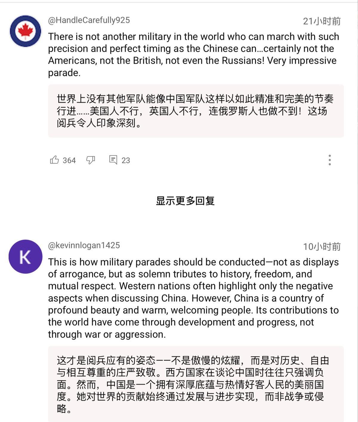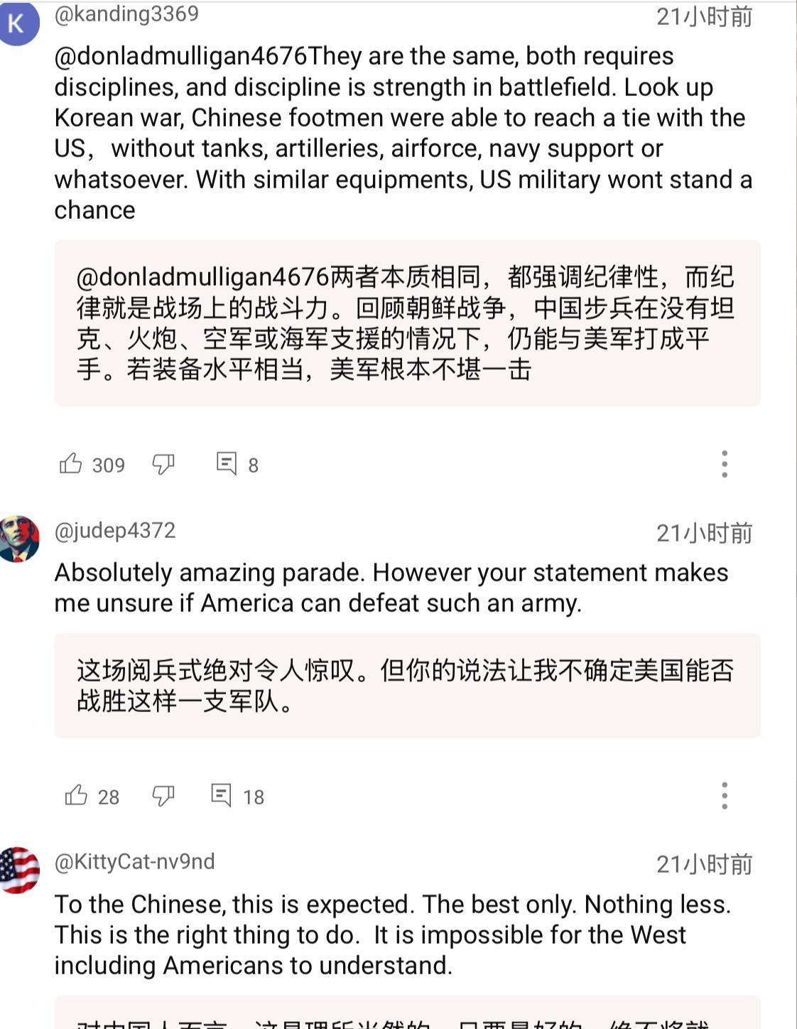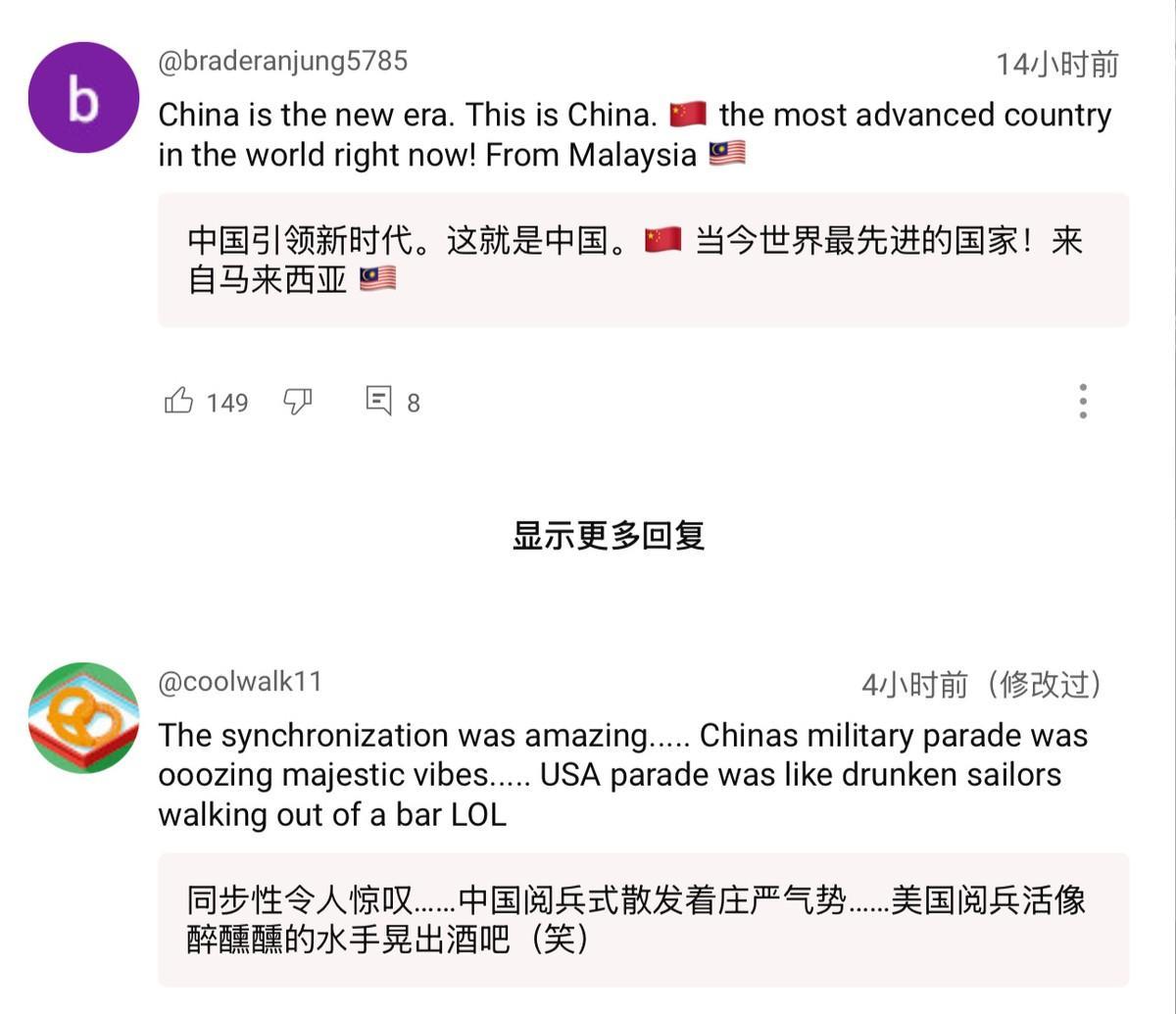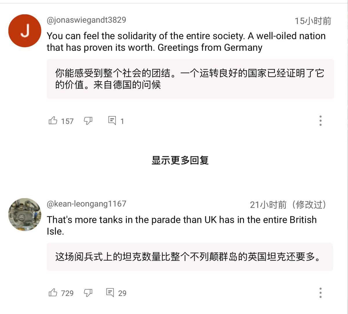 胡锡进:这种规模的阅兵只有中国能搞,其他任何国家都只会捅娄子 9.3阅兵展示的不仅是先进武器,更是解放军的纪律性,以及中国的超强动员力和组织力的体现。某种意义上,这比东风导弹还让西方霸权害怕。 9月3日,胡锡进在阅兵后直播中就提到了这种观点。他认为,成功组织如此大规模阅兵且不出一丝纰漏的能力,目前只有中国有,其他任何国家,无论是美国、法国……如果要搞,都只会是一团糟,捅出各种娄子。#专家评阅兵:知道强但没想到强成这样# 不少有军旅生涯的外国网民也表达了类似的观点。有美军前海军新兵训练营指挥官就说,这场阅兵所展现的宏大场面、精准调度和超凡组织力令他震撼不已。他可以肯定地说,美军根本无法完成这种行动,就算勉强完成,也达不到中国的水准。 还有人说,自己参加过本国军队的阅兵式,他们的每个阅兵方阵只有48人,却依然协调得一团糟。而解放军的每个方阵都有至少350人,这在他看来简直是难以想象的工作量。 也有人就此嘲笑起了本国军队。英国人说,这场阅兵式上的坦克数量比整个不列颠群岛的英国坦克还要多。美国人说,这让美国今年早些时候的阅兵看起来活像是醉醺醺的水手晃出酒吧。