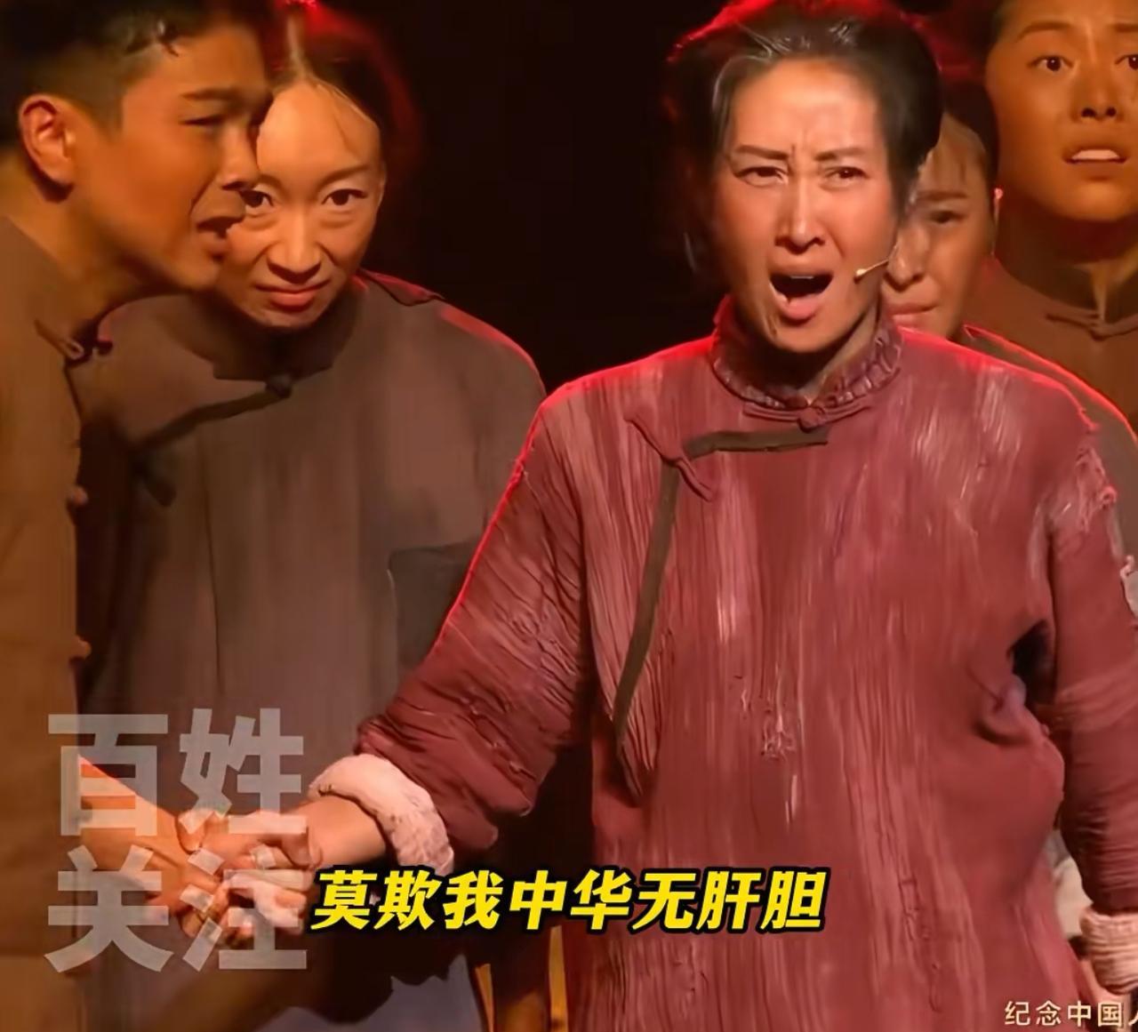 《永远的番号》刘敏涛掷地有声,铿锵有力地说:“莫欺我中华无肝胆,母亲膝下百万兵,叫声儿,休尽苍天笑,杀敌报国,刘老庄连全员补齐,擂鼓送儿出征。”刘敏涛演得太绝了,看到她演的这段,我的眼泪都不听使唤了,就像真的场景在眼前一样。 “刘老庄连”前身是一支游击队,1943年3月,为掩护淮海区党政军领导机关转移,他们与日寇展开激战,全连82名战士,最后全部壮烈牺牲,而刘敏涛饰演的就是其中一位失去了孩子的母亲。 其实在清理战场时却发现,连他们的名字都不知道,最后经过走访、翻遍他们的遗物,也只确认了26位烈士的名字,剩下的56位英雄,连名字都无从考证。 刘敏涛最后抱着儿子说:“孩子,我带你回家。”只这一句,又让我们瞬间泪崩了,真希望英雄们都能找到回家的路。 刘敏涛1976年生,今年49岁,最喜欢她演的《伪装者》的大姐和《琅琊榜》的静妃,最近今年感觉她演的戏都让人印象不深,但这次的话剧真的震撼到我们了,建议姐姐可以多演些这样的角色,也建议这场文艺演出能够全国巡演! 希望我们的小孩子通过这些优秀演员的精彩演出,多了解历史,多向英雄学习,强我中华,砥砺前行! #刘敏涛演技# #《永远的番号》刘敏涛给我演哭了#