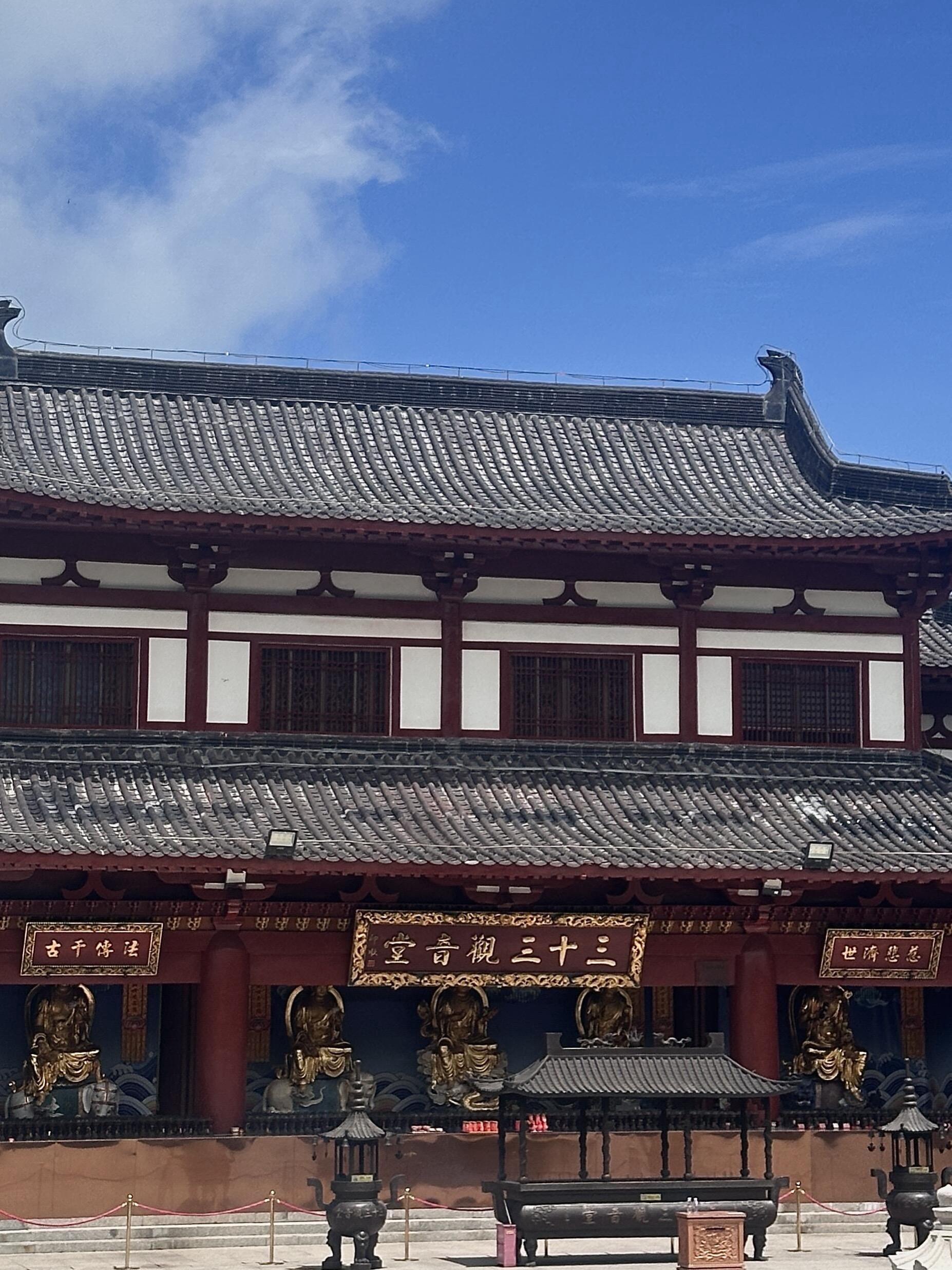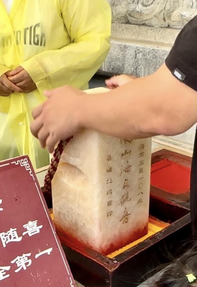 进入圆通宝殿参拜、祈福(有免费赠香点)抱佛脚绕殿一周,乘电梯上莲花座祈福,俯瞰海景 大殿出来可排队盖祈福印章