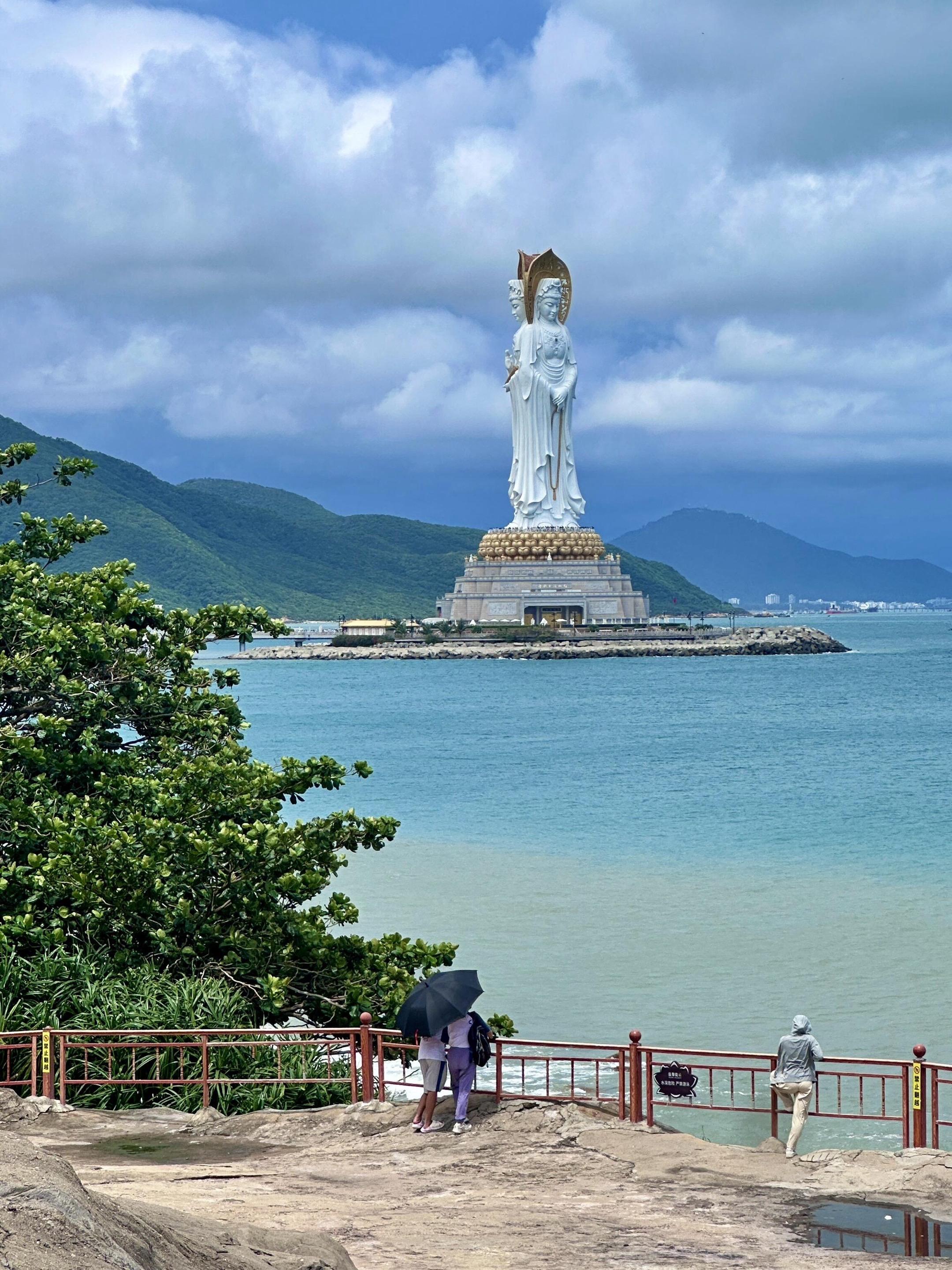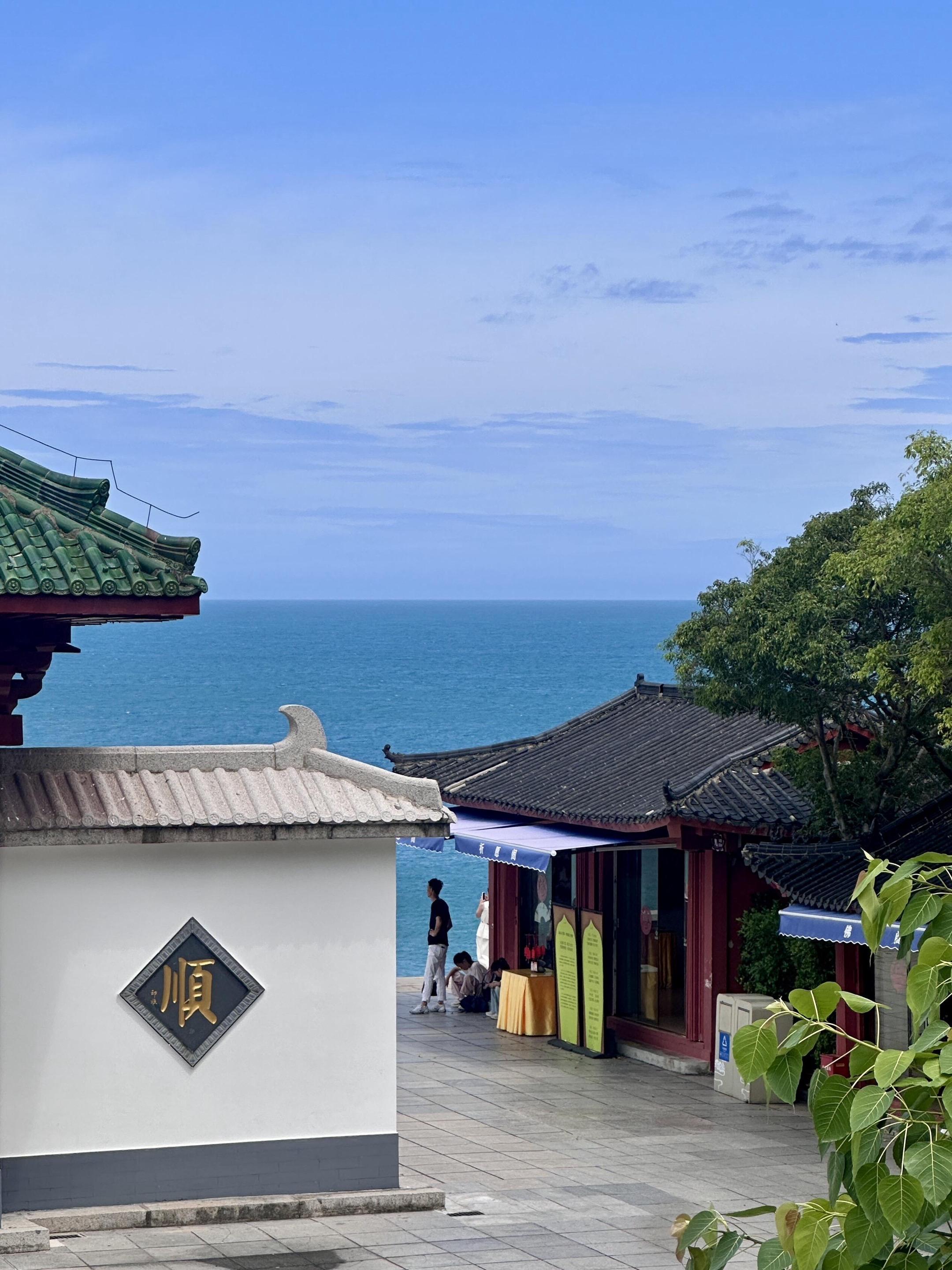 视角绝佳中国最南端的宏大佛教寺院 祈福 参观寺庙,在观海平台远眺海上观音