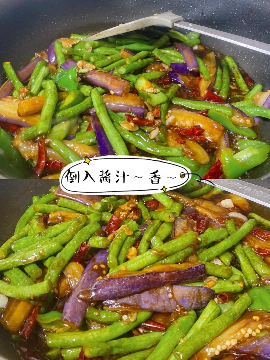 ✨食材:茄子🍆 豆角 青椒 蒜 干辣椒