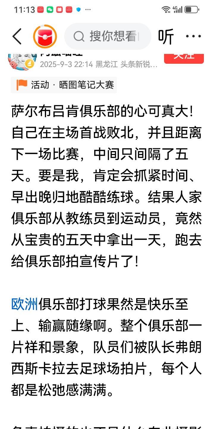 吴敬平教练又发文鼓励樊振东 樊振东的粉丝却是抱怨,萨尔布吕肯俱乐部的心真大,自己主场败北后不好好训练,却跑去给俱乐部拍传宣传片,俱乐部输赢随缘快乐至上,松弛感满满。 粉丝抱怨俱乐部占用训练的时间,去做别的事,不帮樊振东分析下场比赛对手的技战术,全靠樊振东自己去做,心疼樊振东。这些粉丝看不清俱乐部的目的是借樊振东的流量发财吗?人家又没输人家发财了当然快乐享受了,做宣传比训练好,宣传吸引粉丝买票发财,过了这个村就没这个店了。