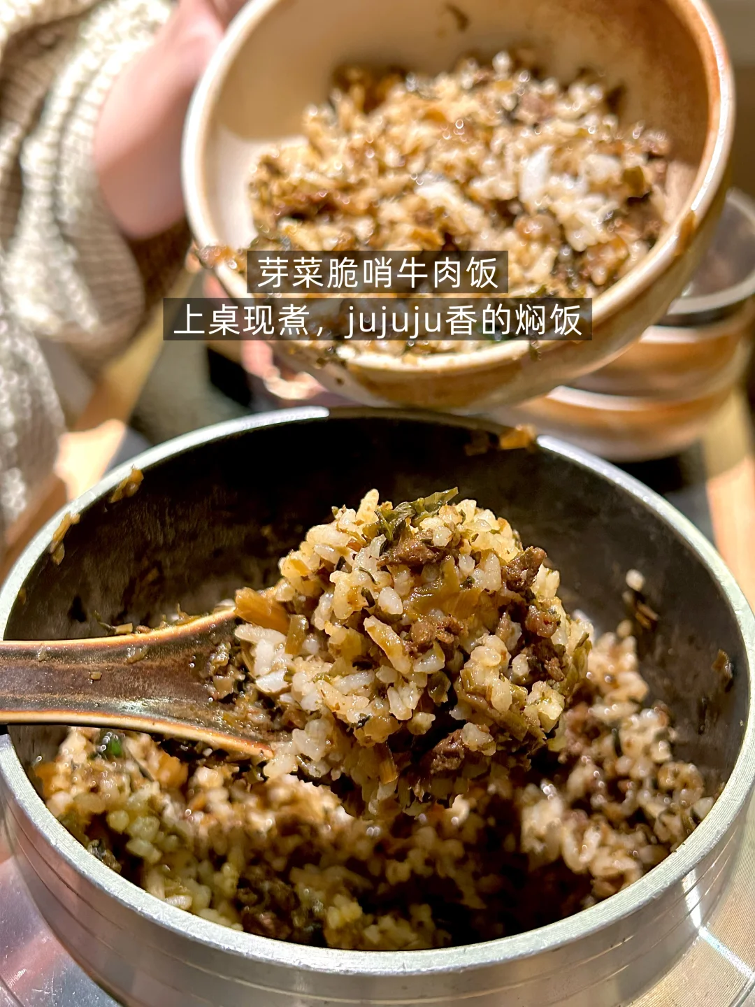芽菜脆哨牛肉饭,上桌现煮的,jujuju香