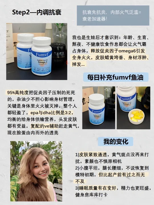 我也是生娃后才意识到:年龄、生育、熬夜、不健康饮食作息都会让火气霸占身体,释放促炎因子omega6引发全身火火,皮肤蜡黄垮垂、身材浮肿、掉发...