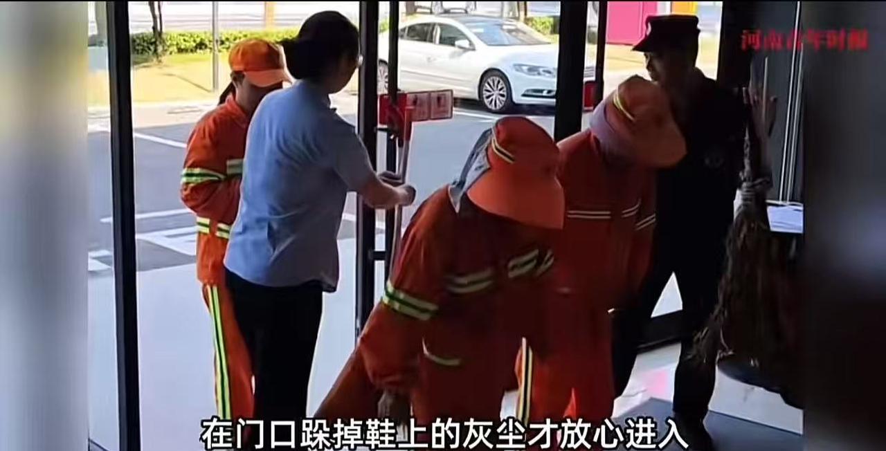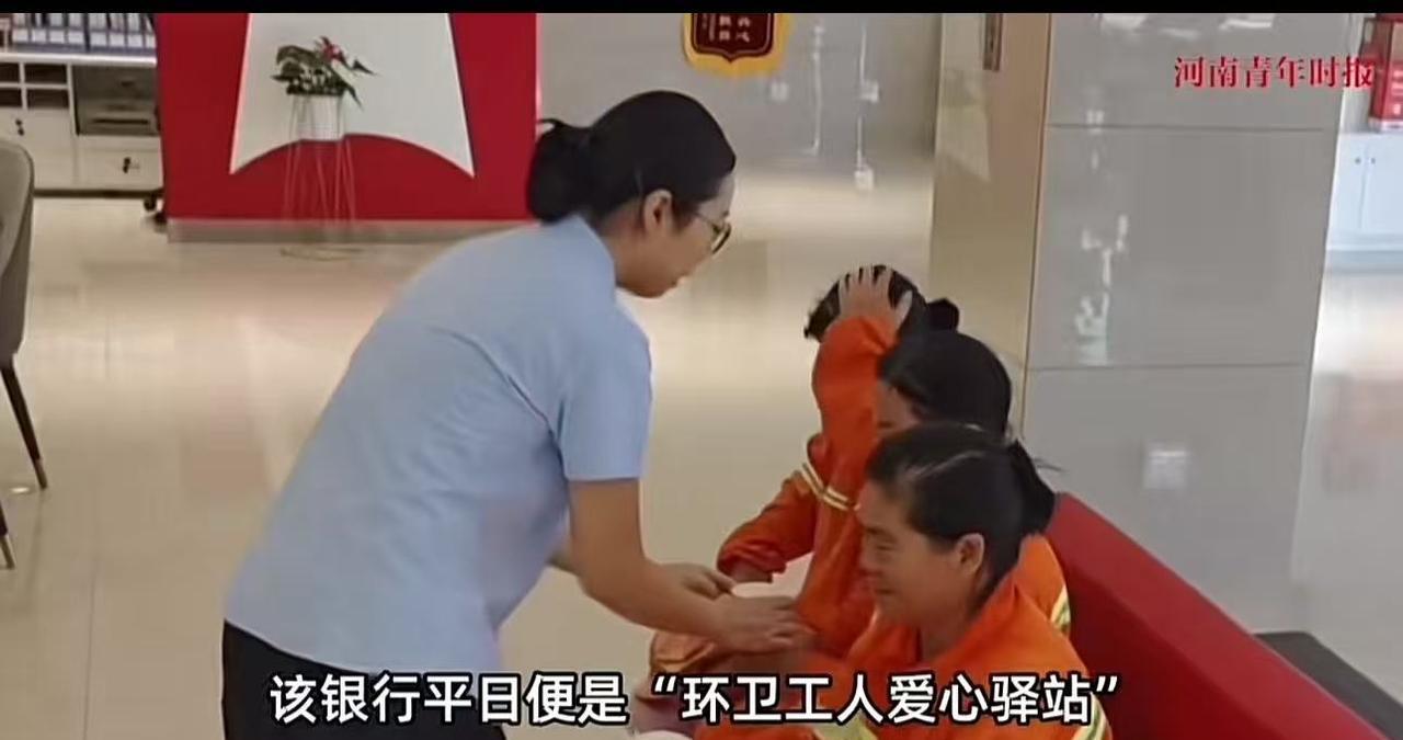 “这个银行火了!” 湖北武汉,环卫工人站在银行门外,踮着脚看银行大厅屏幕上播放的阅兵仪式。银行工作人员发现后,带着保安朝着他们走了过来。环卫工人以为工作人员要赶他们走, 但工作人员的做法把他们给感动了! 天还没怎么亮透,两位环卫工大妈就已早早起身,开启了她们一天的街面清扫工作。 她们手持扫帚,认真地清扫着街道上的每一处垃圾,从街头的这头一直扫到那头,不放过任何一个角落。一直忙碌到上午9点多,她们才终于把整条街面打扫得干干净净。 此时,两位环卫工大妈浑身是汗,她们看到银行门口有一片阴凉的地方,便想着过去休息片刻,缓一缓这疲惫的身子。 当她们来到银行门口时,透过那明亮的玻璃,看到大厅里的屏幕上正在播放阅兵仪式。 那整齐划一的方阵、威武雄壮的军容、激昂澎湃的口号声,还有那雄伟壮观的画面,一下子就把她们给吸引住了。 她们的睛紧紧地盯着屏幕,忍不住继续观看。 不过,环卫工大妈觉得自己身上太脏了,要是进去坐着,会把大厅弄脏的,于是就站在门口,踮起脚尖,伸长了脖子,努力地透过玻璃观看阅兵仪式。 可是没过多久,银行的工作人员就注意到了她们。工作人员和保安一起快步走了过来。 环卫工大妈下意识地以为是要赶她们走,心里顿时有些紧张和失落,脸上露出了尴尬的神情。 但让她们万万没想到的是,工作人员热情地微笑着,邀请她们进大厅观看阅兵仪式,还亲切地说:“大厅里面有空调,很凉快的,还有座位,你们进来坐着看吧,别站在外面累着了。” 环卫工大妈们听了,受宠若惊,连忙摆摆手,说:“我们身上太脏了,会把你们大厅弄脏的,还是算了吧。” 工作人员却依然笑着说:“没关系没关系。” 最后,两位环卫工大妈感激地看了看工作人员,然后跺了跺脚,把鞋上的灰尘尽量跺掉,这才放心地走进了银行大厅。 工作人员见状,主动走上前去,接过她们手上的扫把,然后带着她们来到柔软的沙发旁,让她们坐下。接着,工作人员又贴心地为她们端来了水,轻声说:“你们喝点水,解解渴。” 这一幕让两位环卫工大妈十分感动,她们的眼睛里闪烁着感动的泪花,嘴里不停地说着:“谢谢,谢谢你们……” 此事引发热议有网友说,扫着最干净的地,进门做着最文明的事,看着最暖人的电视…… 也有网友说,这才是真正意义上为人民服务,这才是真正的爱心!这是什么银行,我说什么把我所有的钱存进去。。 还有网友说,其实这是很正常的事,银行工作人员也不比环卫工高尚多少,大家都是平等的! 生活就像一杯咖啡,有时候需要加点糖分,才会变得更加甜蜜;社会也像一个大家庭,需要温情来维系,才会更加和谐美好。 其实,很多公共场所都可以向社会所需要的人员提供贴心的服务,这体现了一个文明社会应有的人文关怀。 就像这家银行的举动,不仅温暖了环卫工大妈的心,也让我们看到了社会的正能 量!
