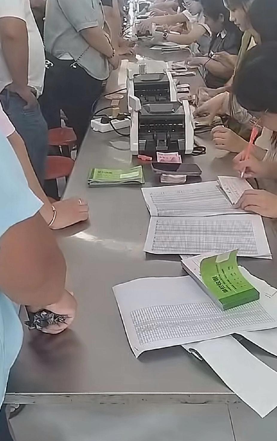 十几台点钞机,20多个收银员,几千人排着队,拿着现金交钱,这场面除了胖东来超市,每年都会在学校开学那天见到。 也真是够麻烦,学费还只能收现金,只听那点钞机在哒哒哒的忙碌个不停,学校领导高兴的嘴合不住,家长们手里握着现金,一个个的脸上没有任何笑容。 看这钱的厚度,最起码在5000块钱以上,一天进账几千万。 也不清楚收学费为什么总是收现金呢?每年因为这都有丢钱和被偷的事情发生,很多学生的学费都是家长省吃俭用,东拼西凑借来的,如果丢的话,估计对这个家庭来说也是一场不小的打击,真的不如直接公户转账来的方便。
