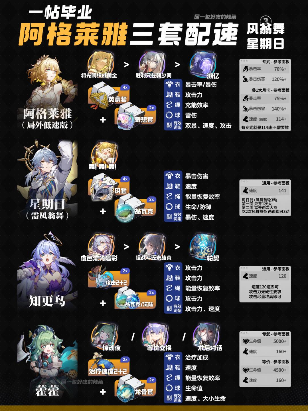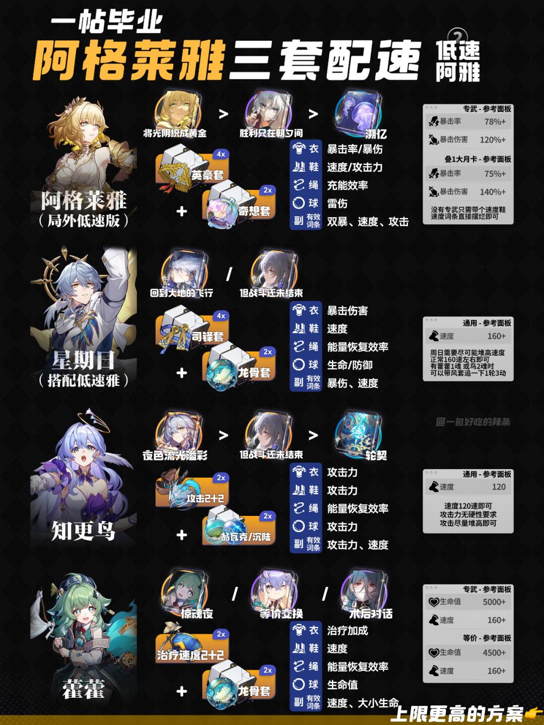 大家好,这里是辣条~ 这期是『阿格莱雅』三套不同配速的全队培养攻略~ 希望能帮助到大家 ————————————— 如有遗漏/错误欢迎指出,共同进步~ 最近新玩家/回坑玩家多,大家友善讨论哦~ ————————————— 崩坏星穹铁道 星穹铁道攻略 星穹铁道配队 星穹铁道日更挑战 星穹铁道阿格莱雅 阿格莱雅 我在星穹铁道找彩蛋 星穹铁道崩学家 游戏