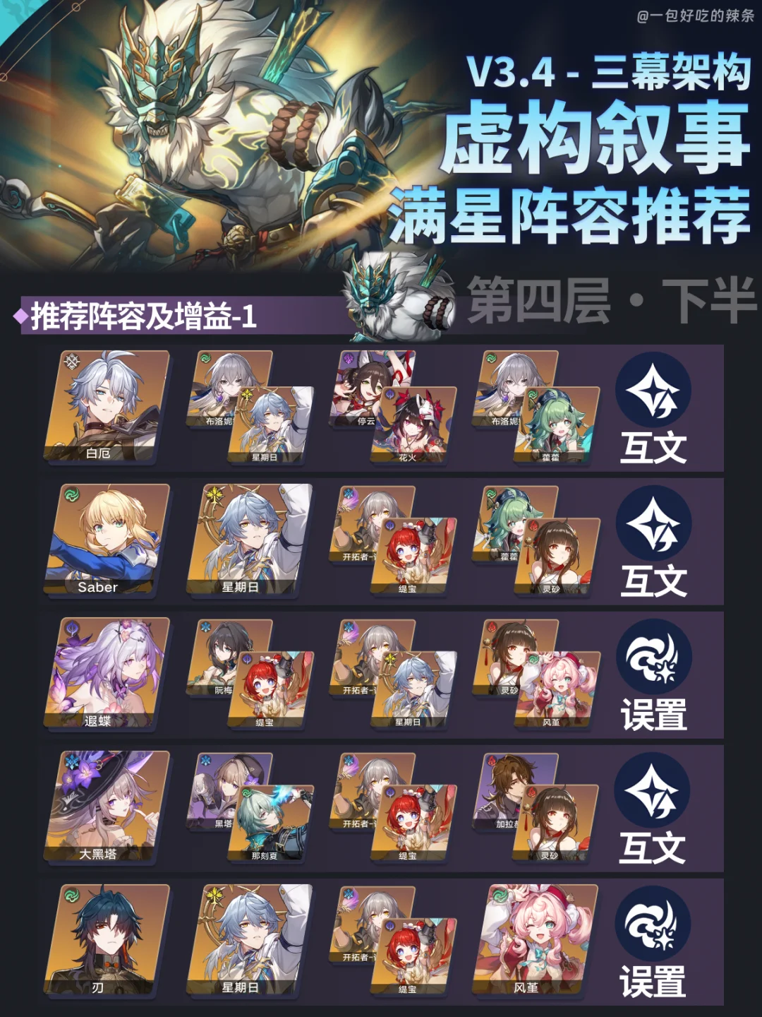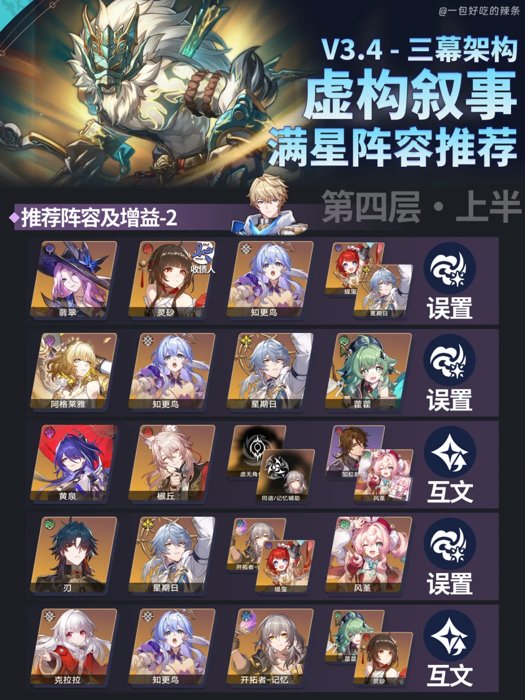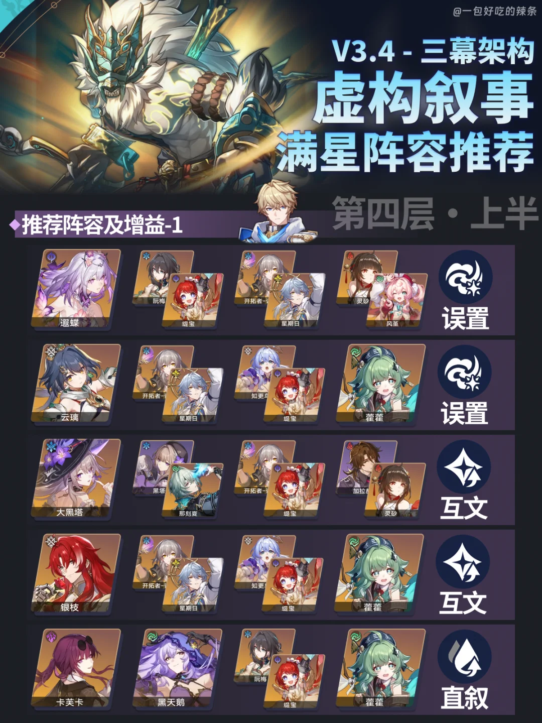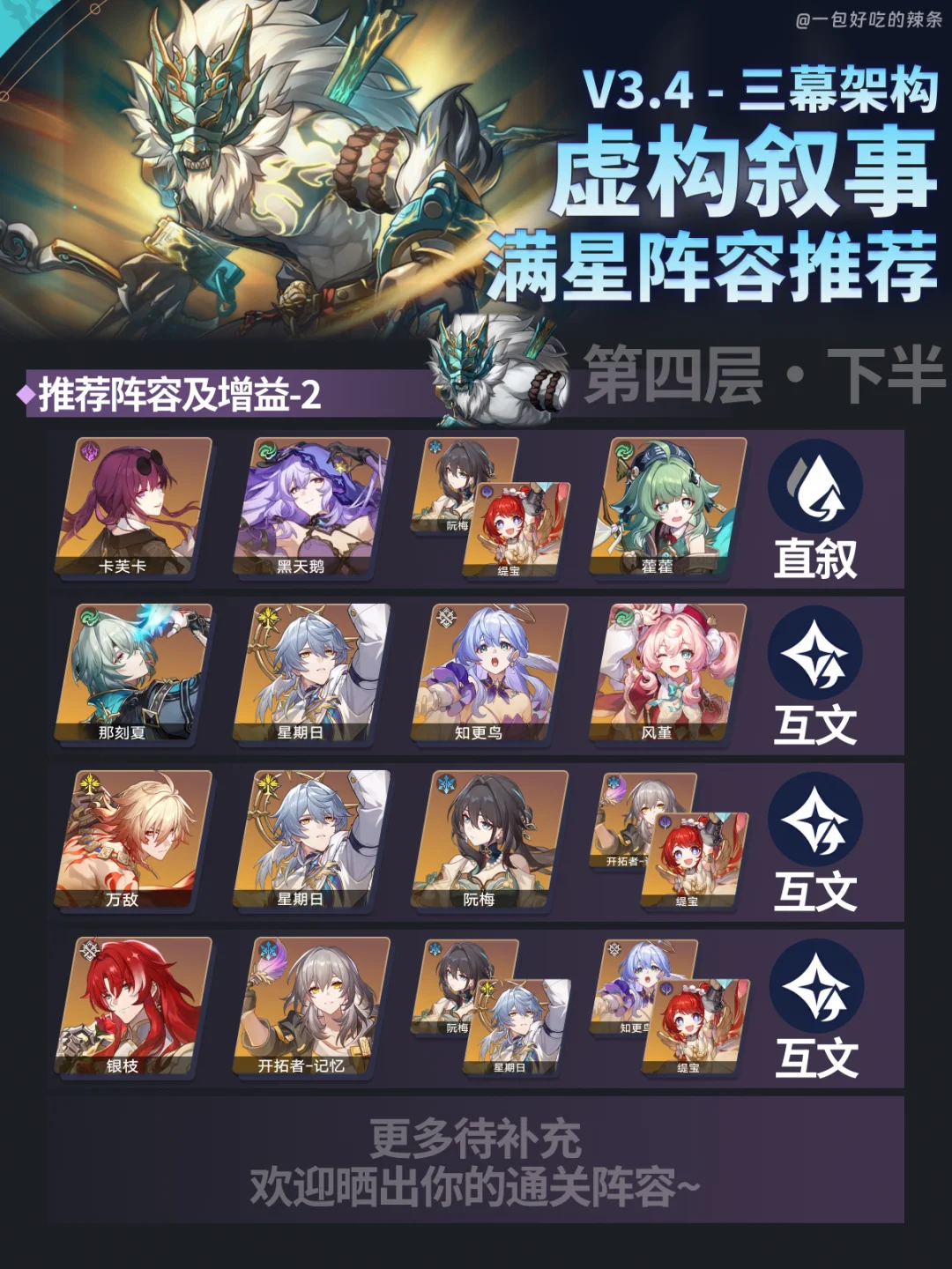 滴滴!这里是辣条 这期是3.4版本档期三路深渊的阵容推荐 希望能帮助到大家 - 崩坏星穹铁道 崩坏星穹铁道创作者激励计划 星穹铁道日更挑战 星穹铁道攻略 星穹铁道配队 星穹铁道翁法罗斯 末日幻影 虚构叙事 混沌回忆星穹铁道巡星杯