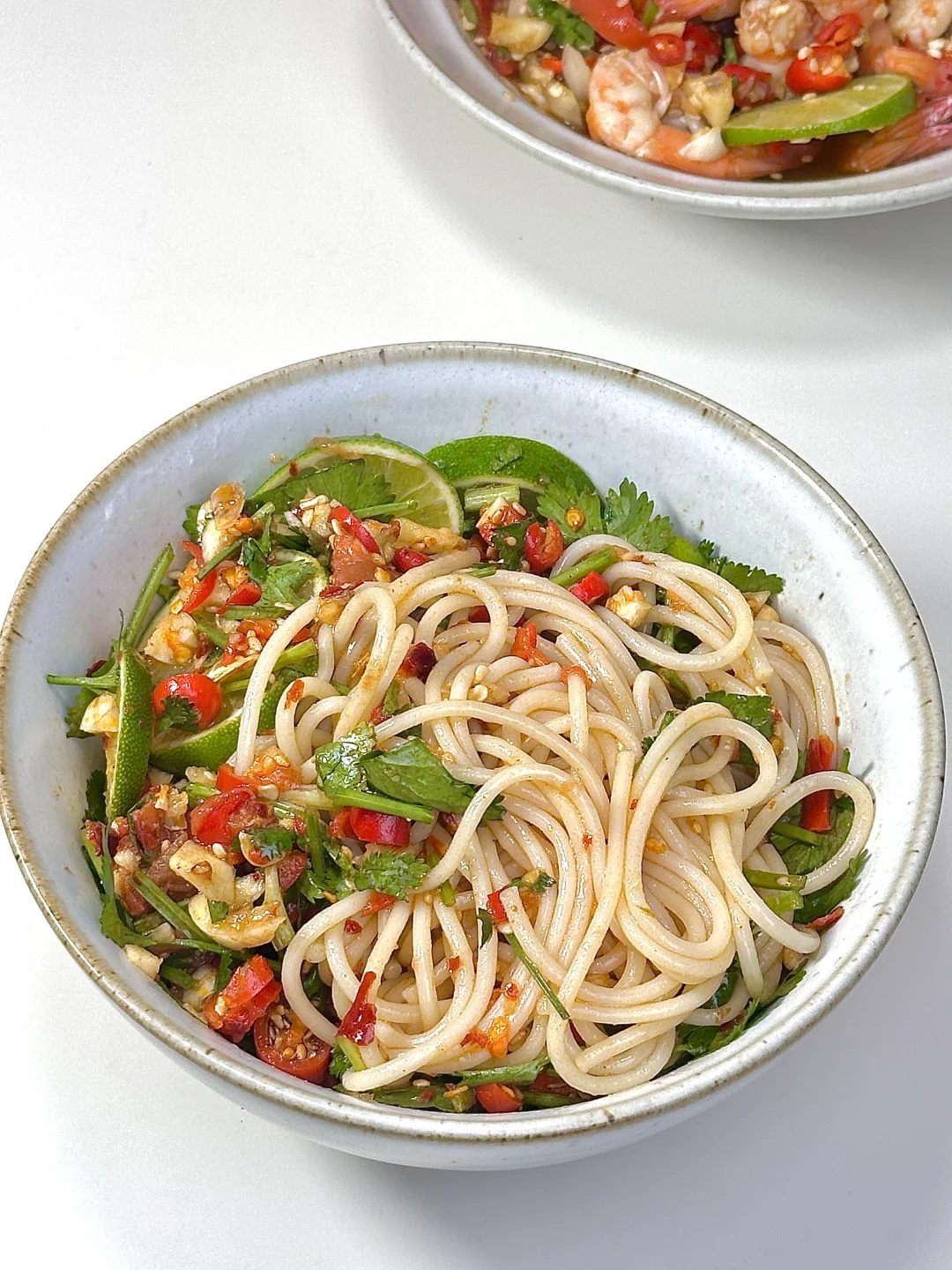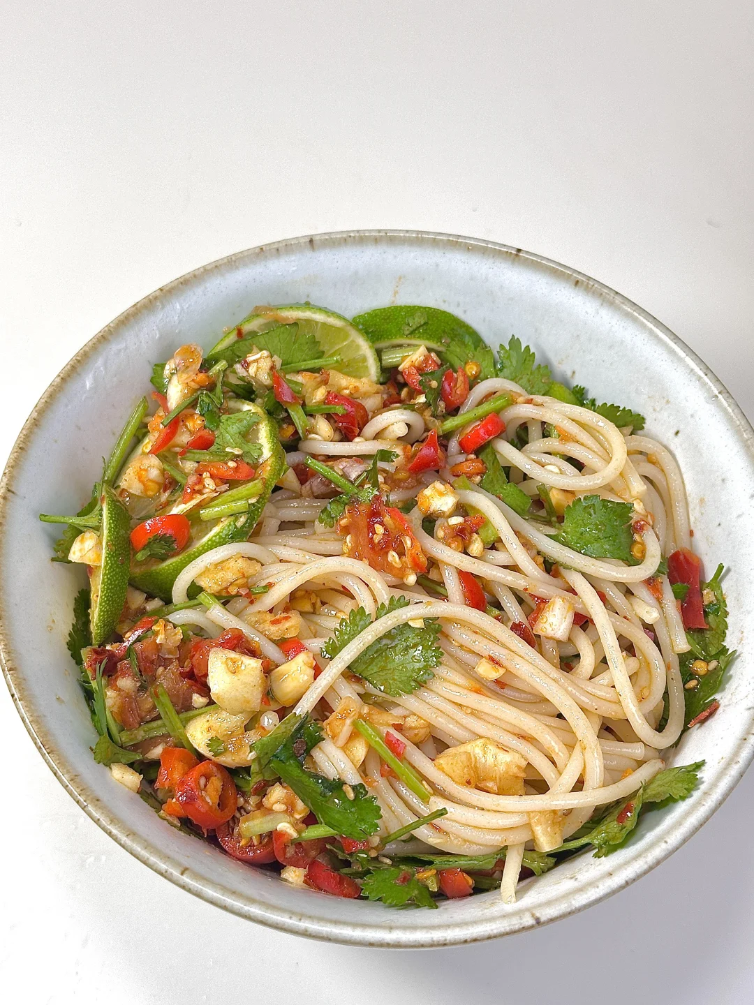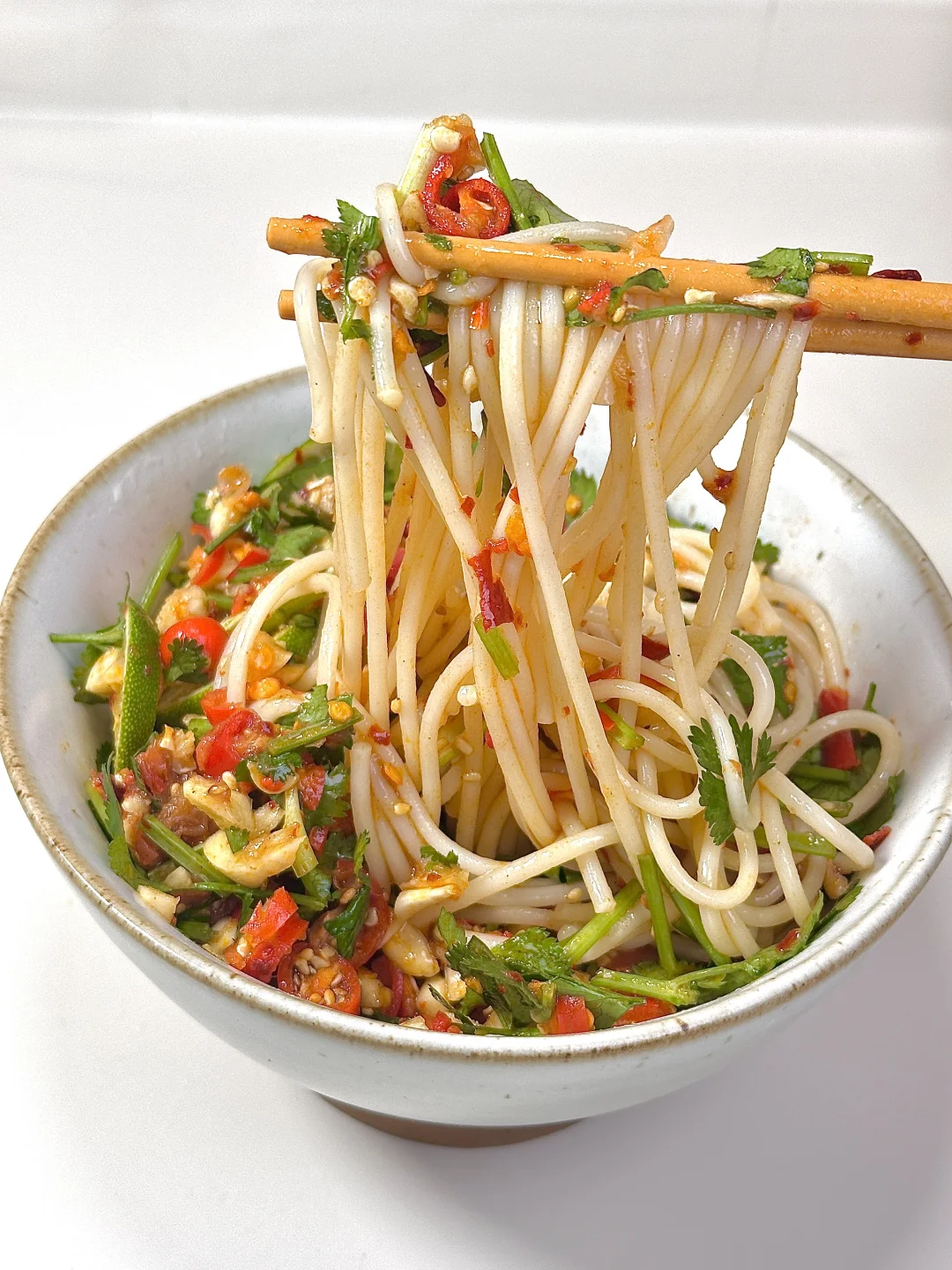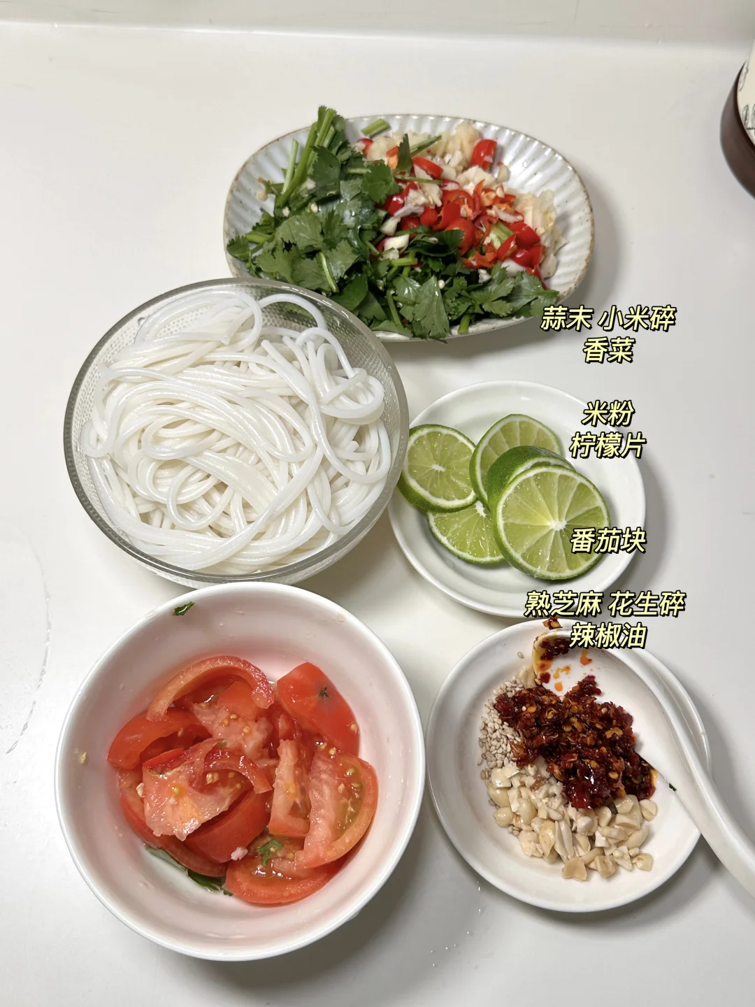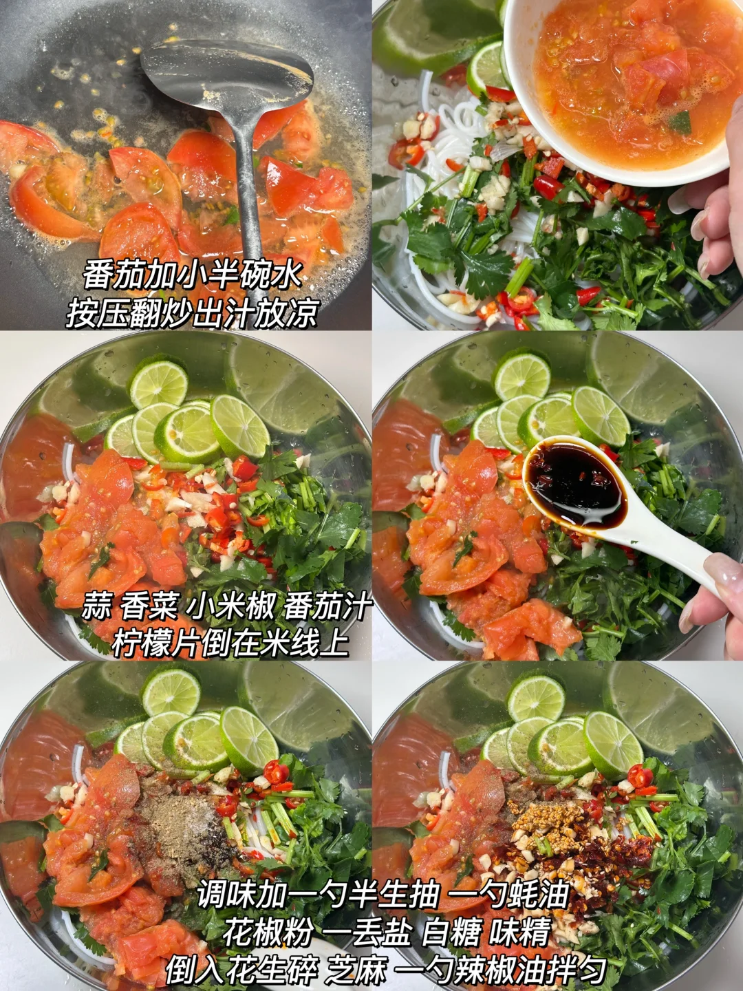 凉拌酸辣米线🍜 爽滑可口 一碗根本不够吃 好开胃🤤柠檬汁🍋🟩的酸味混合着小米椒的鲜辣 口感丰富我的宅家美食日记 ✨食材:米粉 柠檬 蒜末 小米椒碎 香菜碎 柠檬 熟芝麻 花生碎 辣椒油 1️⃣:番茄切块加小半碗水放锅里按压翻炒出汁盛出备用。 碗里放煮好沥干水份的米线 倒蒜末 小米碎碎 香菜 ,柠檬 番茄汁 ,调味加一勺半生抽 一勺蚝油 花椒粉 一丢盐 味精 白糖,放上熟芝麻 花生碎 辣椒油拌匀开始。 好好吃饭呀🖖🏻